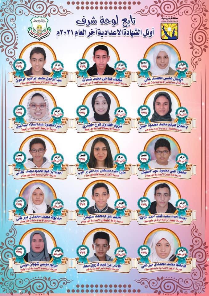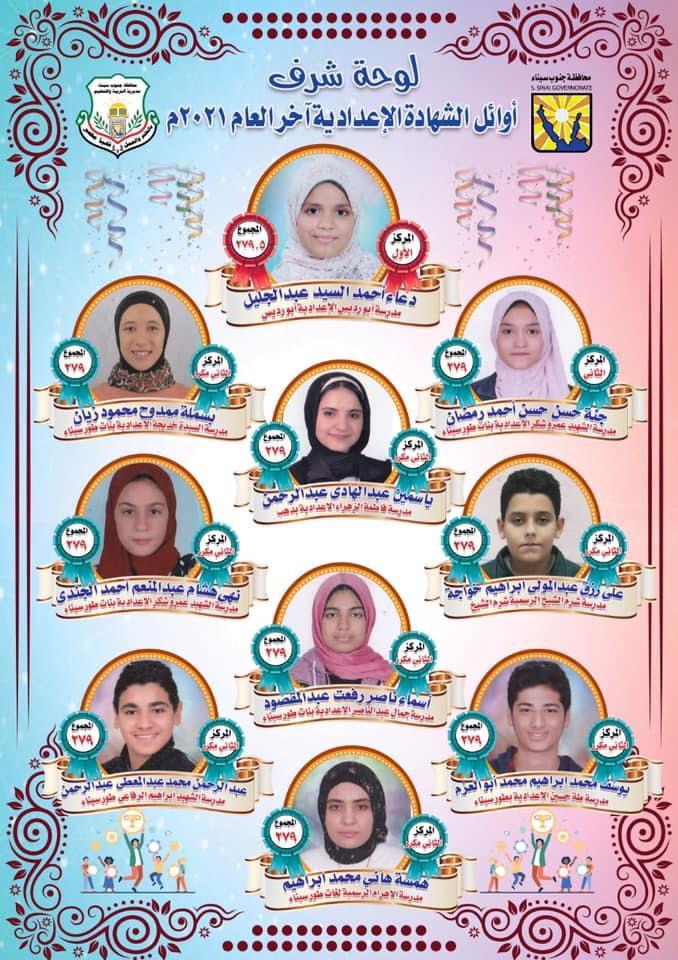 ننشر أسماء أوائل الشهادة الإعدادية بجنوب سيناء (صور)