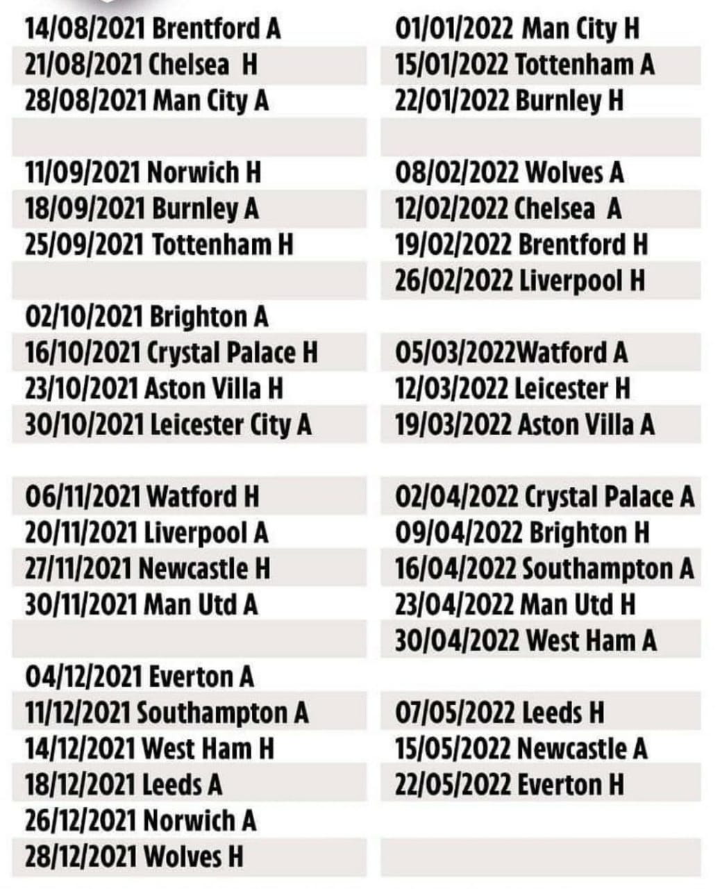 أعلنت رابطة الدوري الإنجليزي الممتاز "بريميرليج" اليوم الأربعاء، بشكل رسمي، جدول مباريات المسابقة للموسم الجديد 2021/2022.