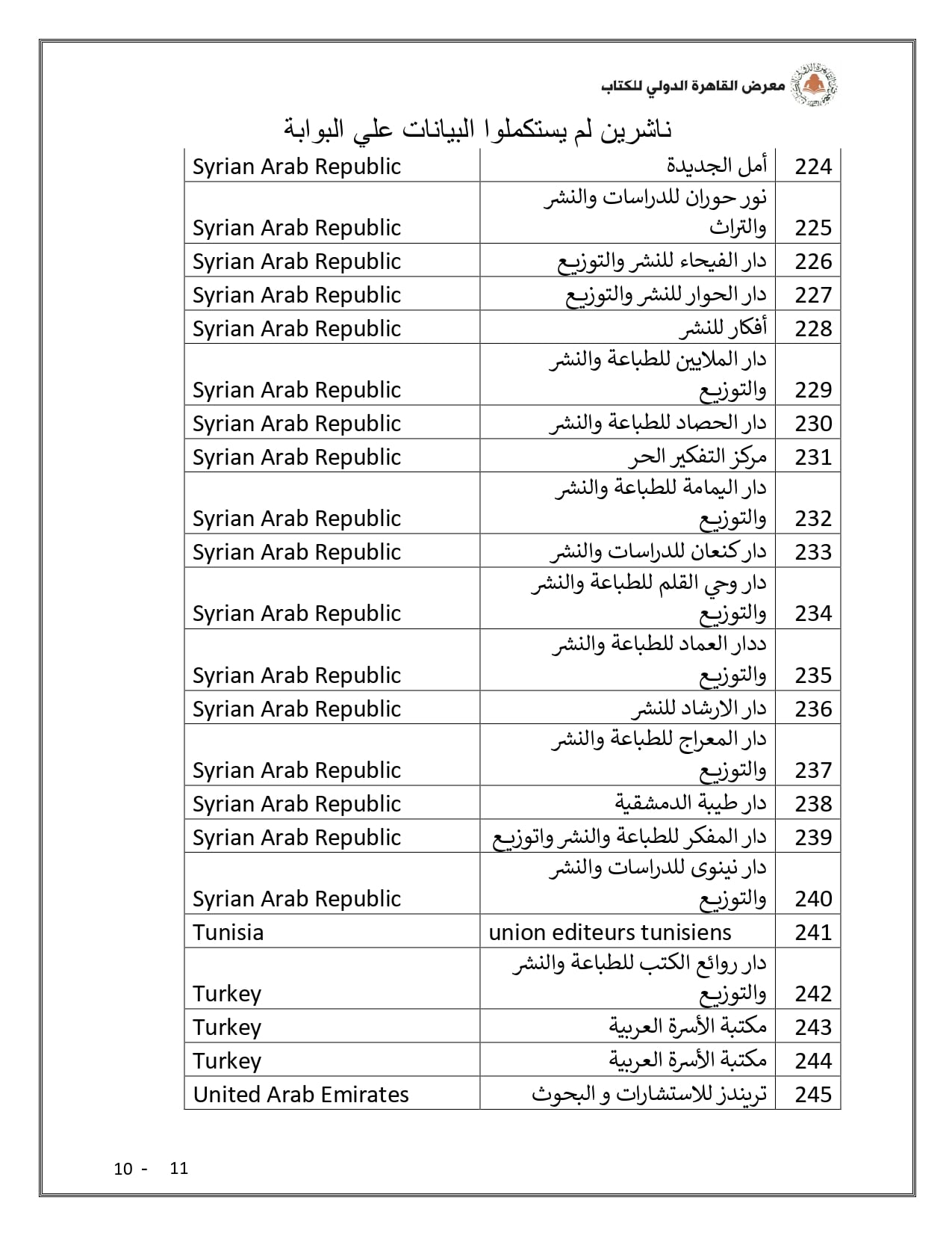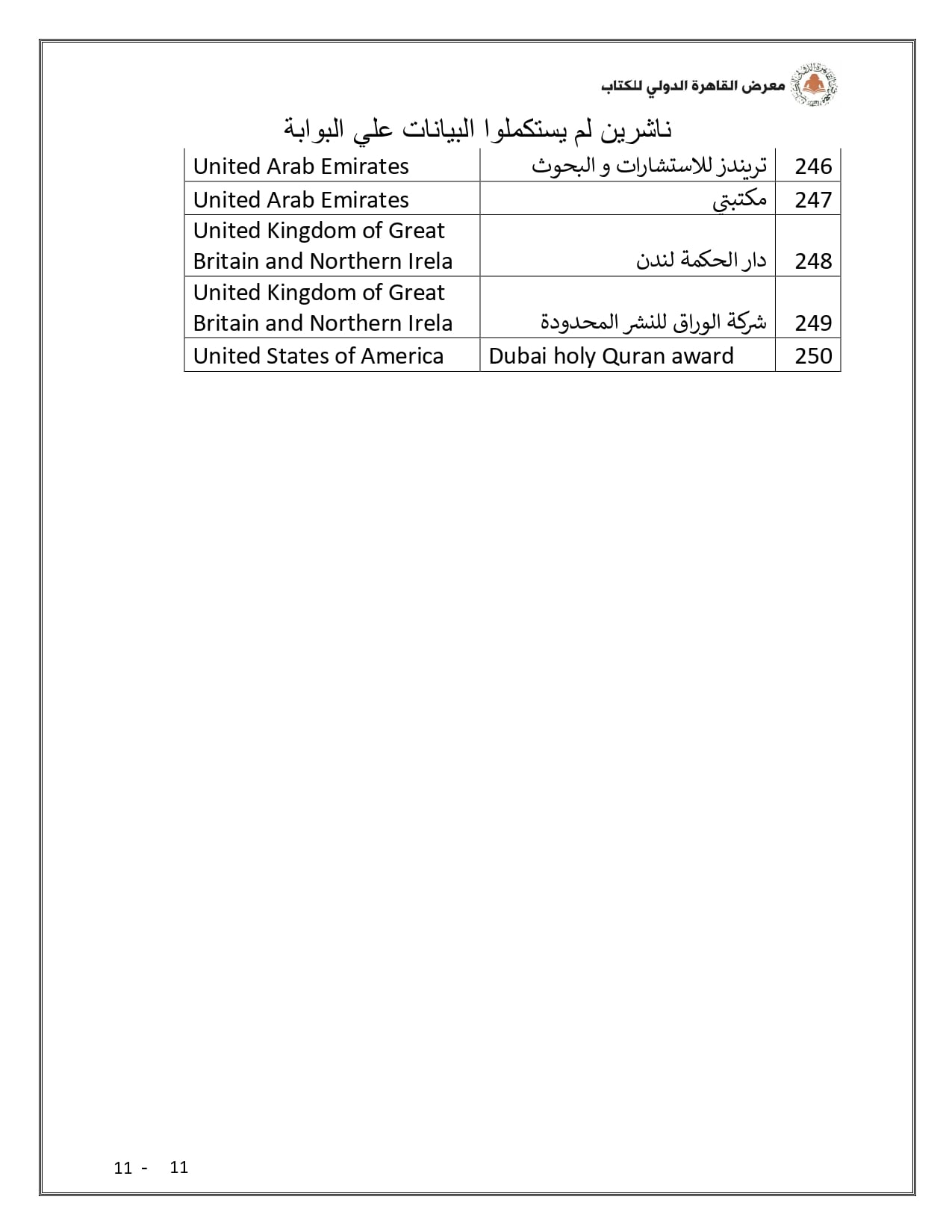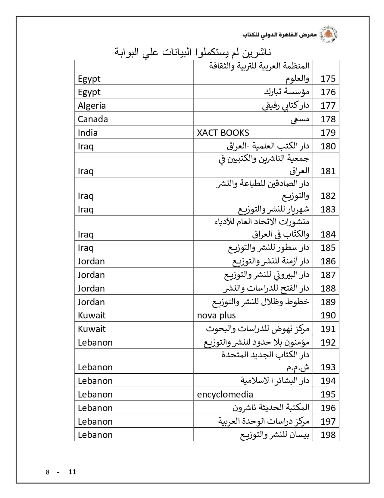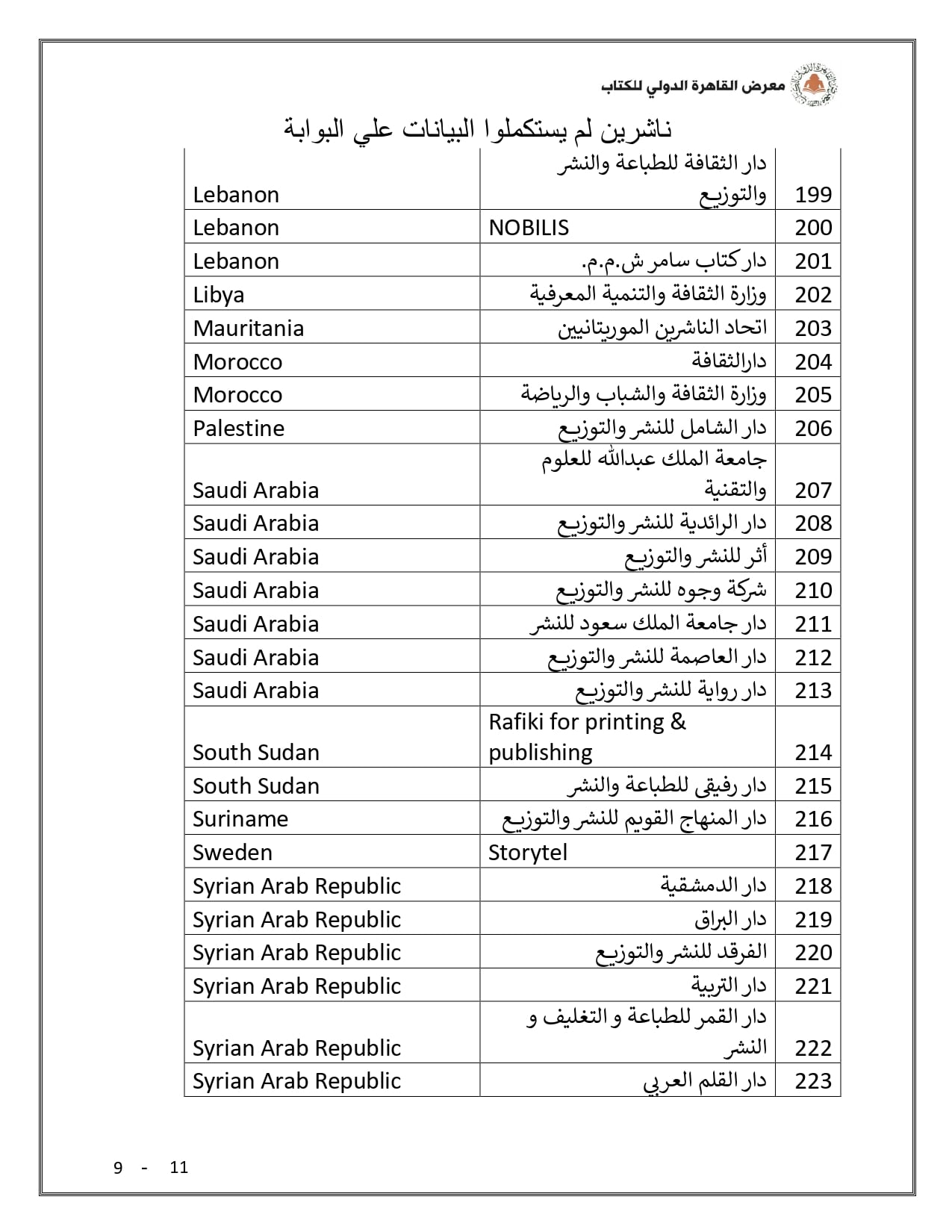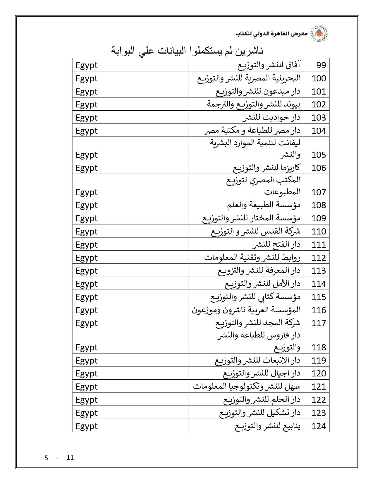 ونشر اتحاد الناشرين المصريين على صفحته الرسمية بموقع التواصل الاجتماعي "فيس بوك" كشوفًا بقائمتين الأولى تحتوي على الناشرين الذين قاموا بإنشاء حساب، ولكن لم يقوموا باستكمال بياناتهم بشكل صحيح، والقائمة الثانية تحتوي على الناشرين الذين قاموا بالانتهاء من الخطوة الثانية من تحميل المستندات وتسجيل البيانات، ولكن لم يبدؤوا في الخطوة الثالثة من تحميل إصداراتهم.
