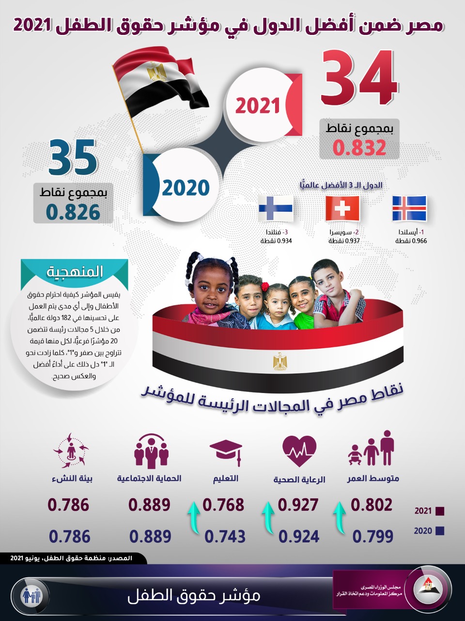 مجلس الوزراء: مصر ضمن أفضل الدول في مؤشر حقوق الطفل 2021 (إنفوجرافيك)