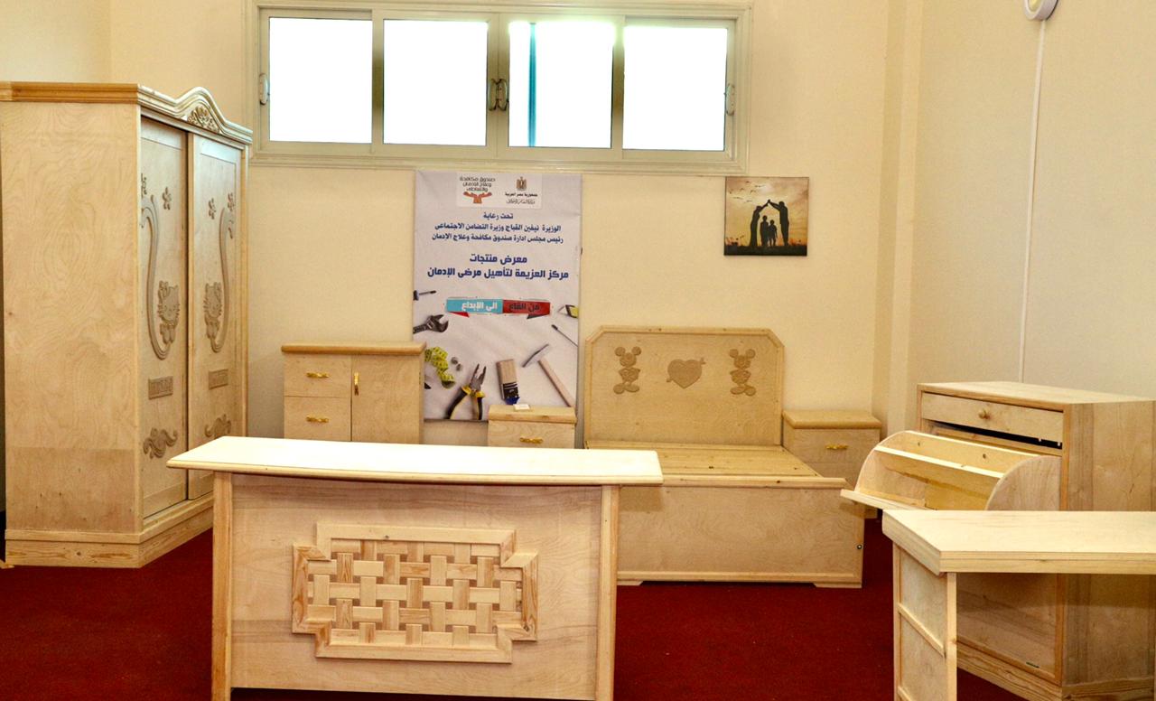 ونجح المتعافون من تعاطي المخدرات داخل ورش التدريب بمركز العزيمة التابع لصندوق مكافحة الإدمان في تصميم كافة أعمال الموبيليا والنجارة لتأثيث مركز جديد لعلاج مرضى الإدمان، ومن المقرر أن تفتتحه وزيرة التضامن الاجتماعي نهاية العام الجاري بمحافظة قنا.