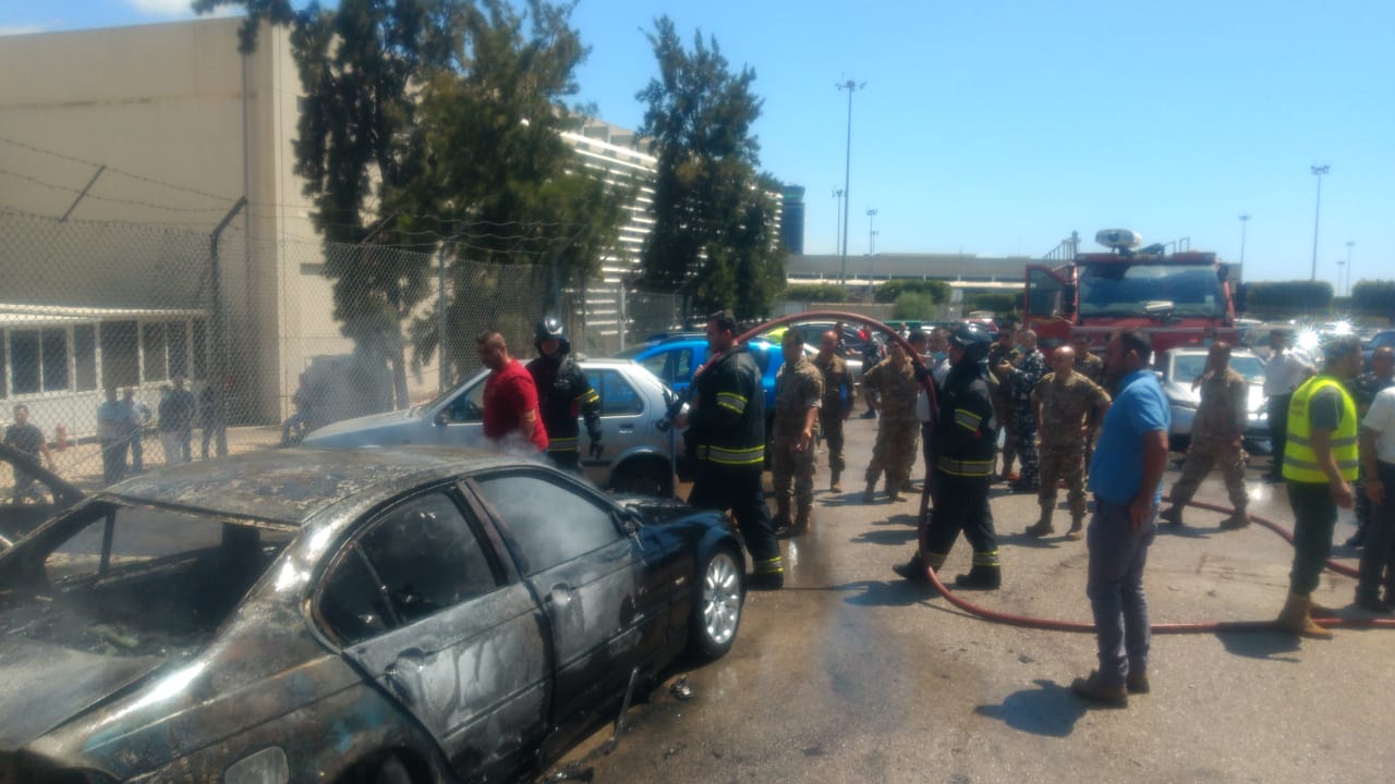 إخماد حريق اندلع بأحد مواقف السيارات القريبة من مطار بيروت (صور)
