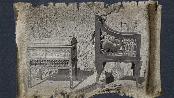 نشرت إدارة المتحف المصري بالتحرير عبر موقعها الرسمي على "تويتر"، صورة من “سلبية زجاجية” يعود تاريخها إلى عام 1905، تصور كرسيًا وصندوقًا خاصًا بأدوات الزينة من مقبرة يويا وتويا بوادي الملوك بالأقصر.