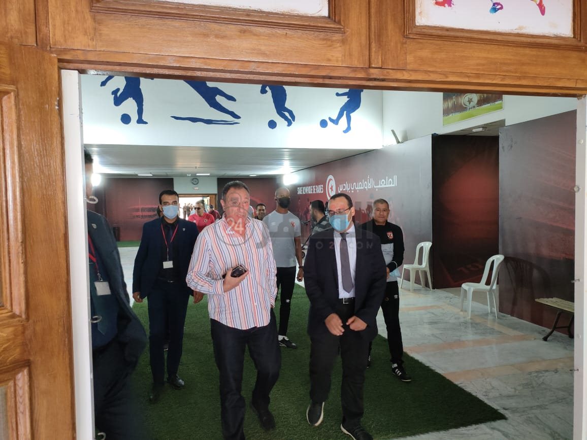 وشهد محمود الخطيب رئيس مجلس إدارة النادي الأهلي، وطارق قنديل وخالد مرتجي عضوا مجلس القلعة الحمراء، والسفير المصري في تونس مران النادي الأخير، لمؤازرة اللاعبين قبل المواجهة الحاسمة أمام الترجي التونسي في دوري أبطال إفريقيا.