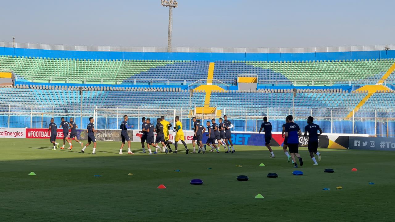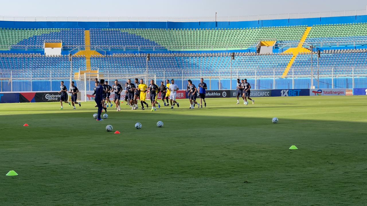 وخاض الفريق مرانه لمدة ساعة على الملعب الرئيسي للدفاع الجوي، وشهد العديد من التجهيزات للمواجهة الهامة الصعبة، من خلال تدريبات بدنية وتقسيمة بطول الملعب، وفرض المدرب السرية التامة على اللقاء بعدما سمح بوجود الإعلام لمدة 15 دقيقة طبقا لتعليمات الاتحاد الإفريقي.