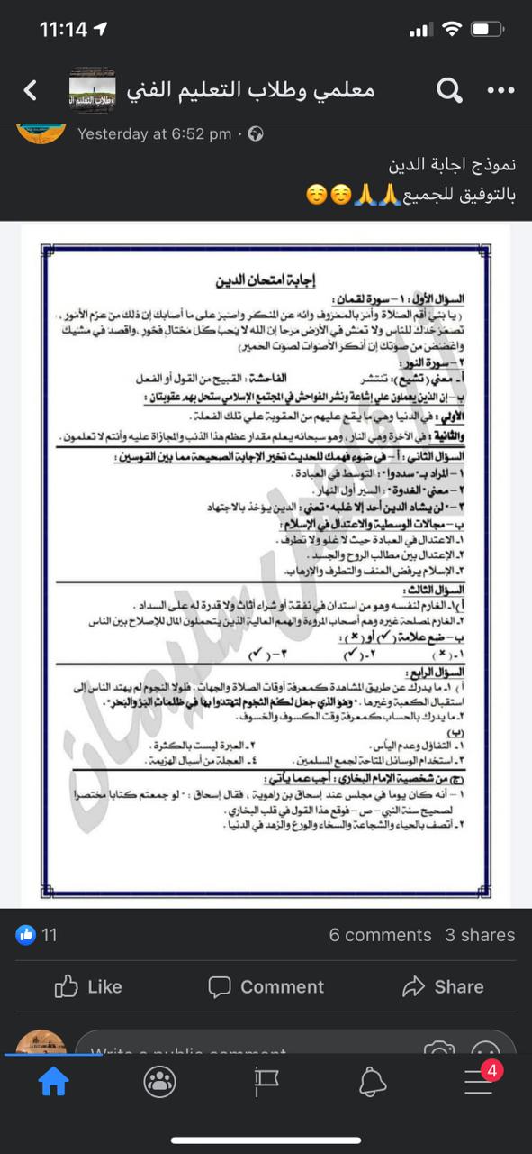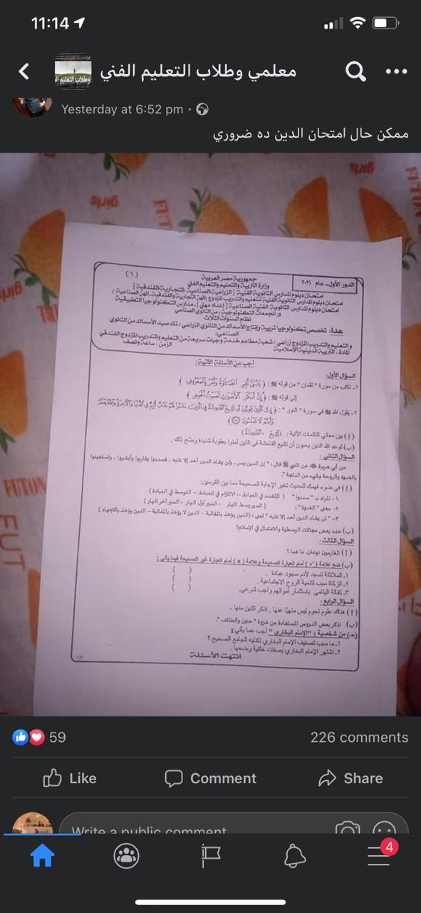 ونشر عدد من الطلاب أسئلة امتحان التربية الدينية على مجموعات خاصة بالتعليم الفني على موقع التواصل الاجتماعي “فيس بوك”، لطلب إجابة الأسئلة قبل تسليمها للمدارس.