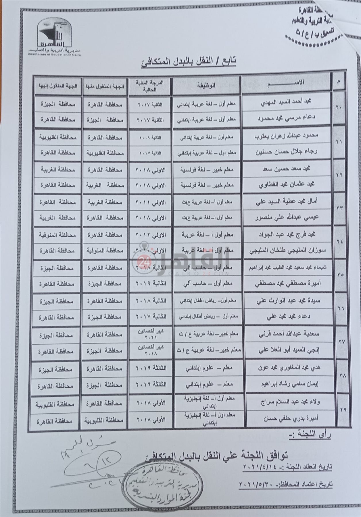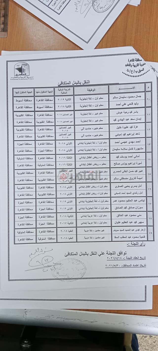 ننشر كشوف أسماء المعلمين بعد الموافقة على نقلهم من محافظاتهم للقاهرة (خاص)