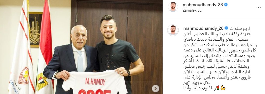 وواصل: "أشكر من كل قلبي جمهور الزمالك الغالي على دعمه وحُبه ومُساندته لي، وأتطلع إلى المزيد من النجاحات معًا الفترة المقبلة".