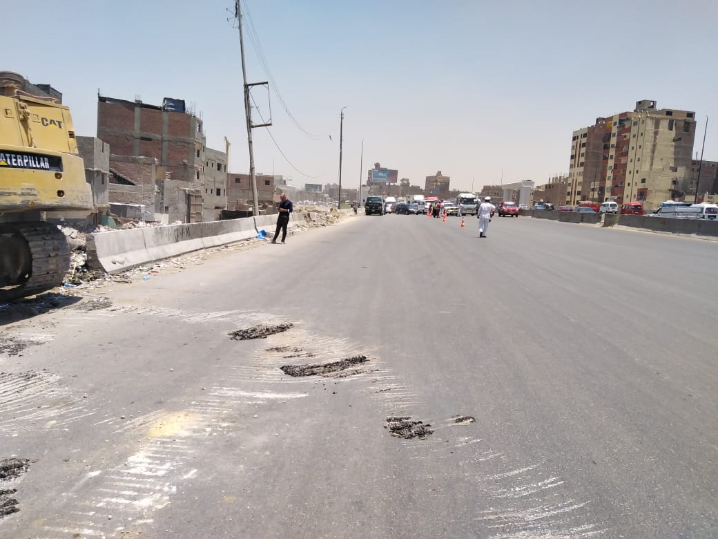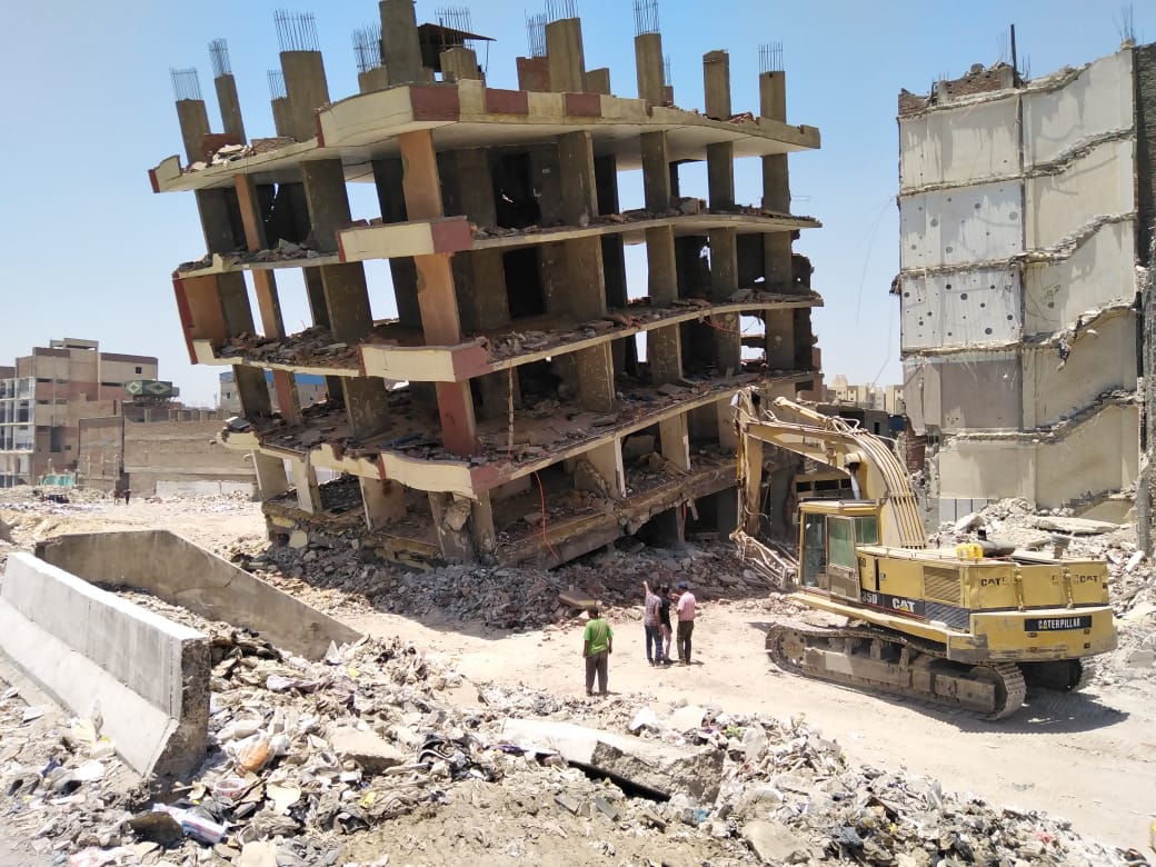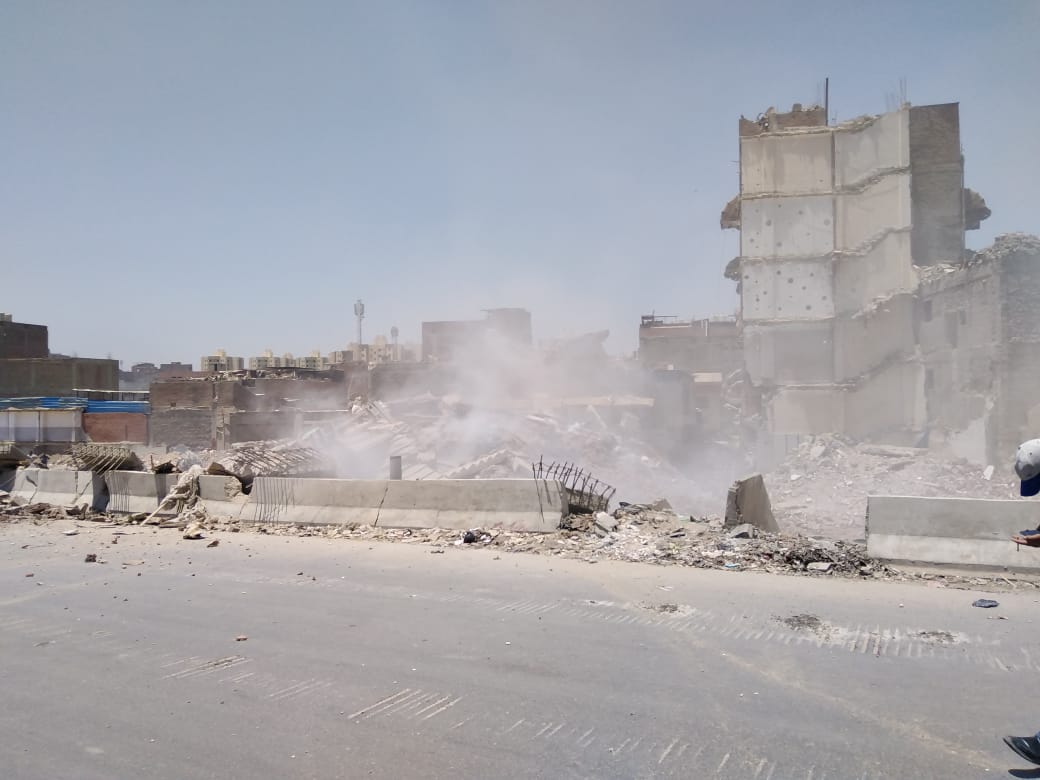 إزالة العقار المائل على الطريق الدائري باتجاه المنيب (صور وفيديو)