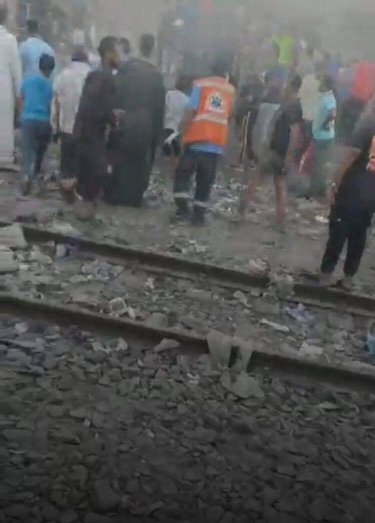 اللقطات الأولى لحادث اصطدام قطار بأتوبيس عمال في حلوان