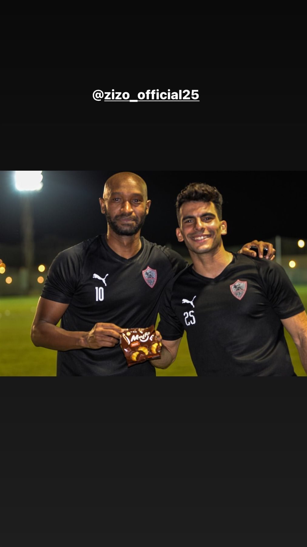 دعم محمود عبد الرازق شيكابالا، لاعب الفريق الأول بنادي الزمالك، صديقه أحمد سيد زيزو، خلال معسكر الفريق المقام بالعين السخنة.