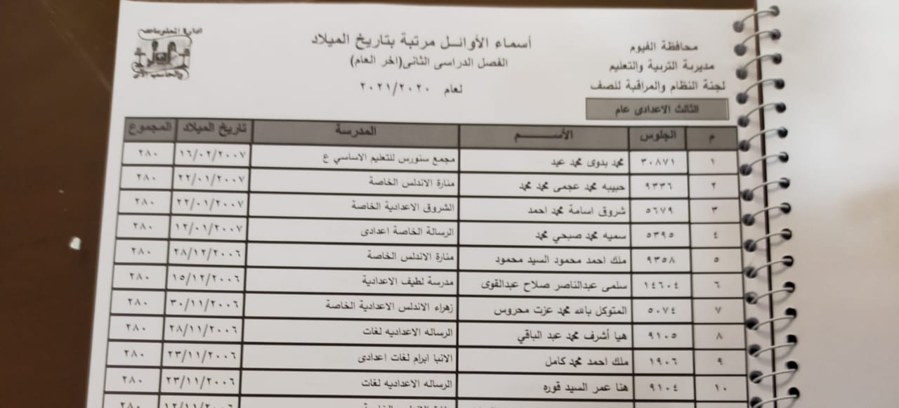 ننشر أسماء العشر الأوائل في الشهادة الإعدادية بالفيوم (فيديو)
