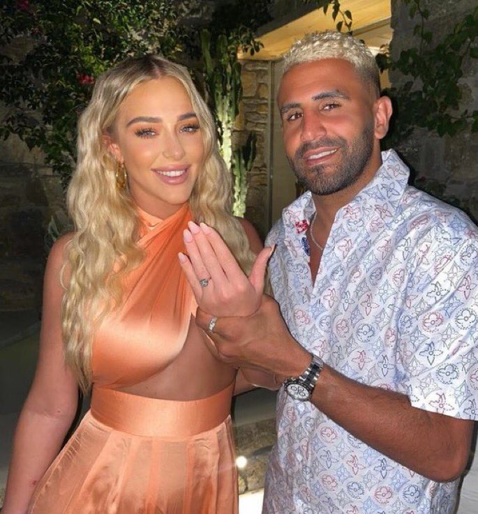 ونشرت صحيفة “ذا صن" الإنجليزية أن رياض محرز نزل على ركبته، وقدّم خاتم الخطبة إلى تايلور، حيث تبلغ قيمته 400 ألف جنيه إسترليني، إذ صنع بناءً على طلبه ليقدمه إلى صديقته اليوم، خلال قضائهما عطلة في جزيرة ميكونوس باليونان بصحبة والديها.