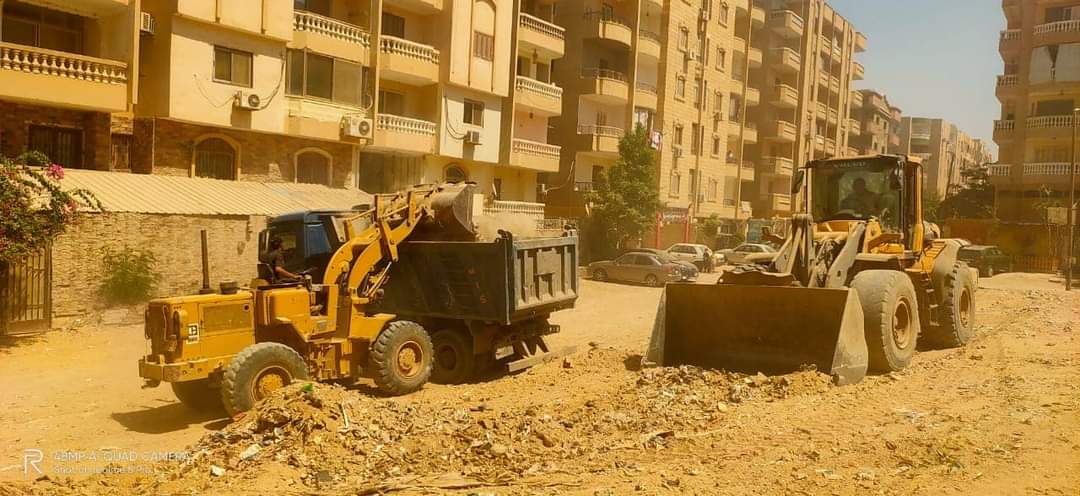رفع مخلفات من أراضى فضاء بمنطقة بهضبة الأهرام