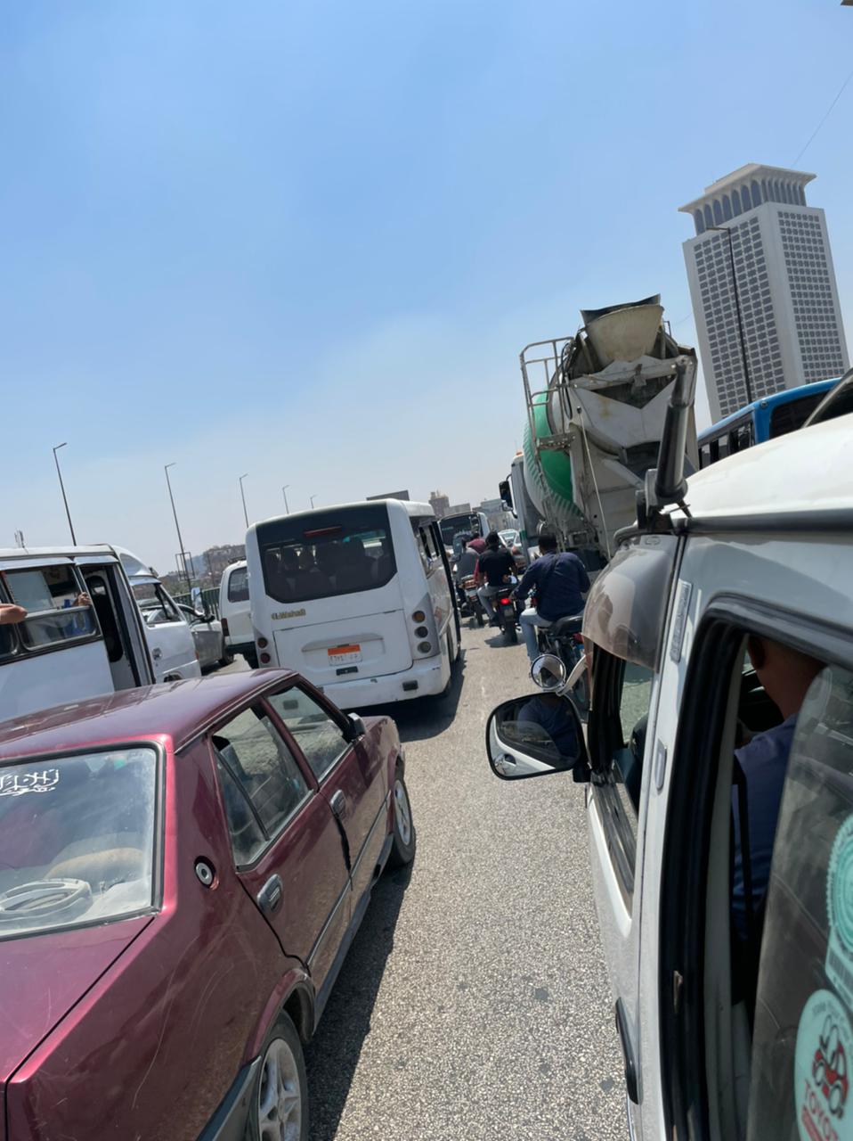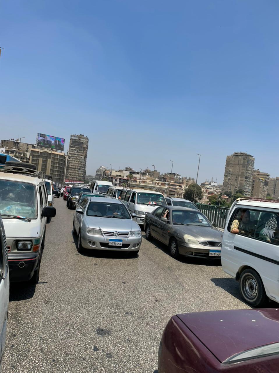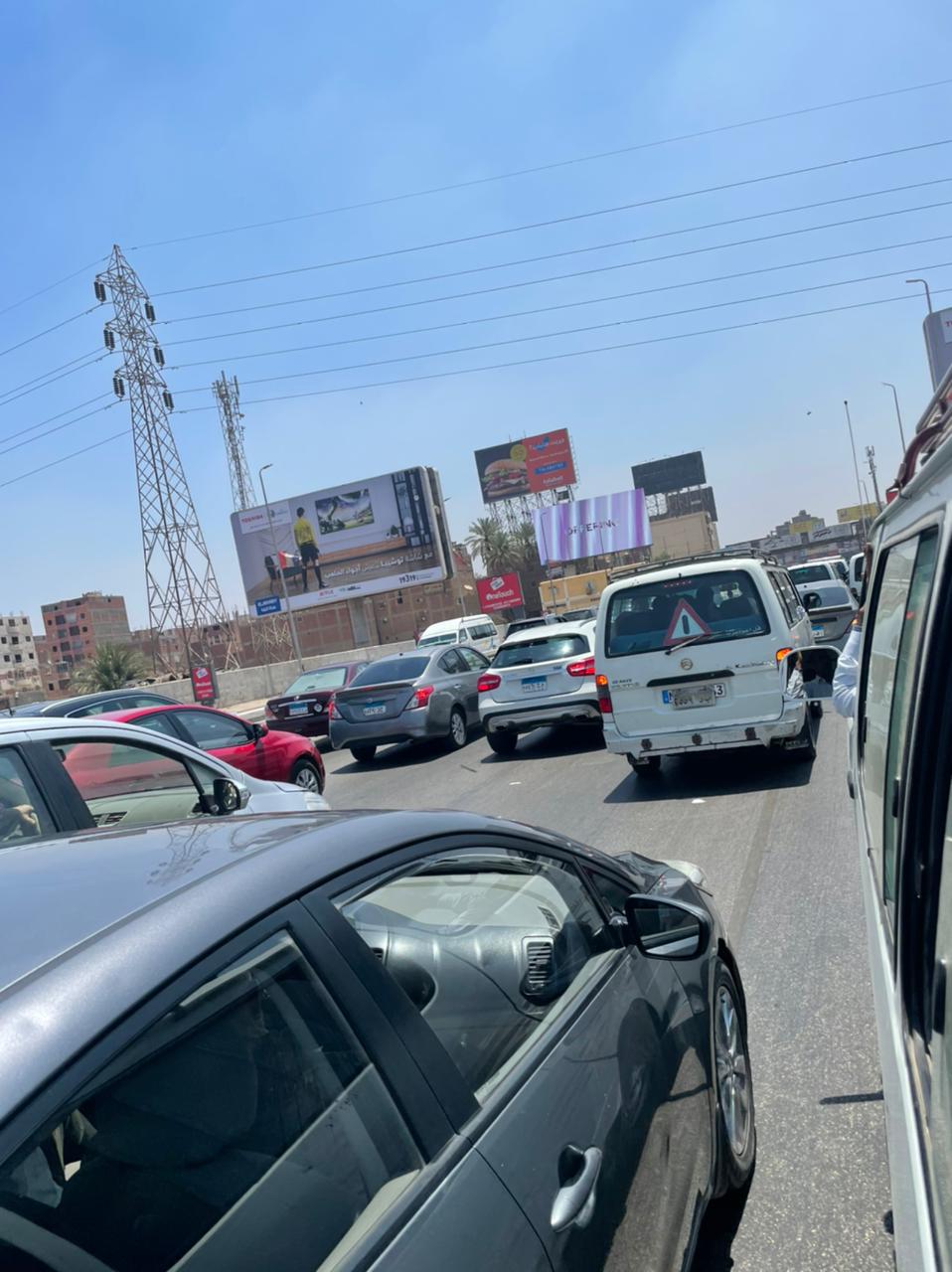 ازدحام مروري بطريق المحور من أكتوبر إلى ميدان لبنان وكوبري 15 مايو (صور)