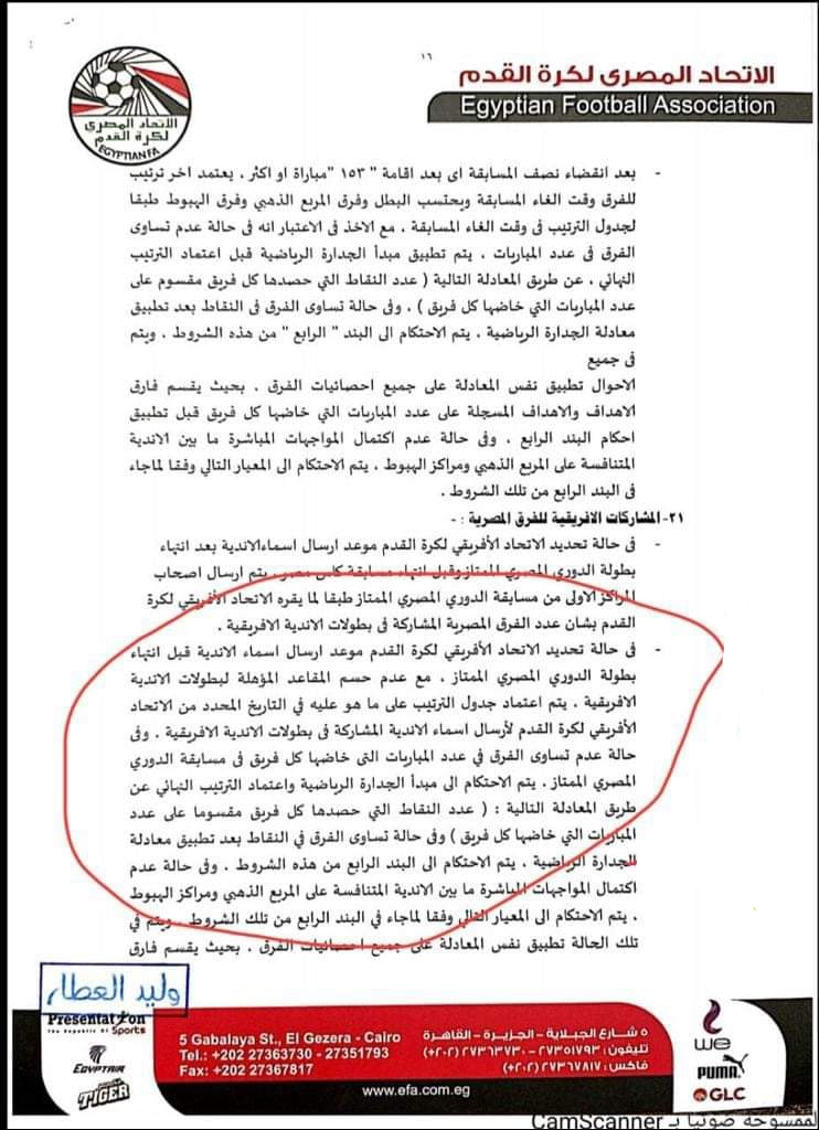 المصري: من حقنا المشاركة بالكونفدرالية حال استمرارنا في المربع الذهبي (مستند)