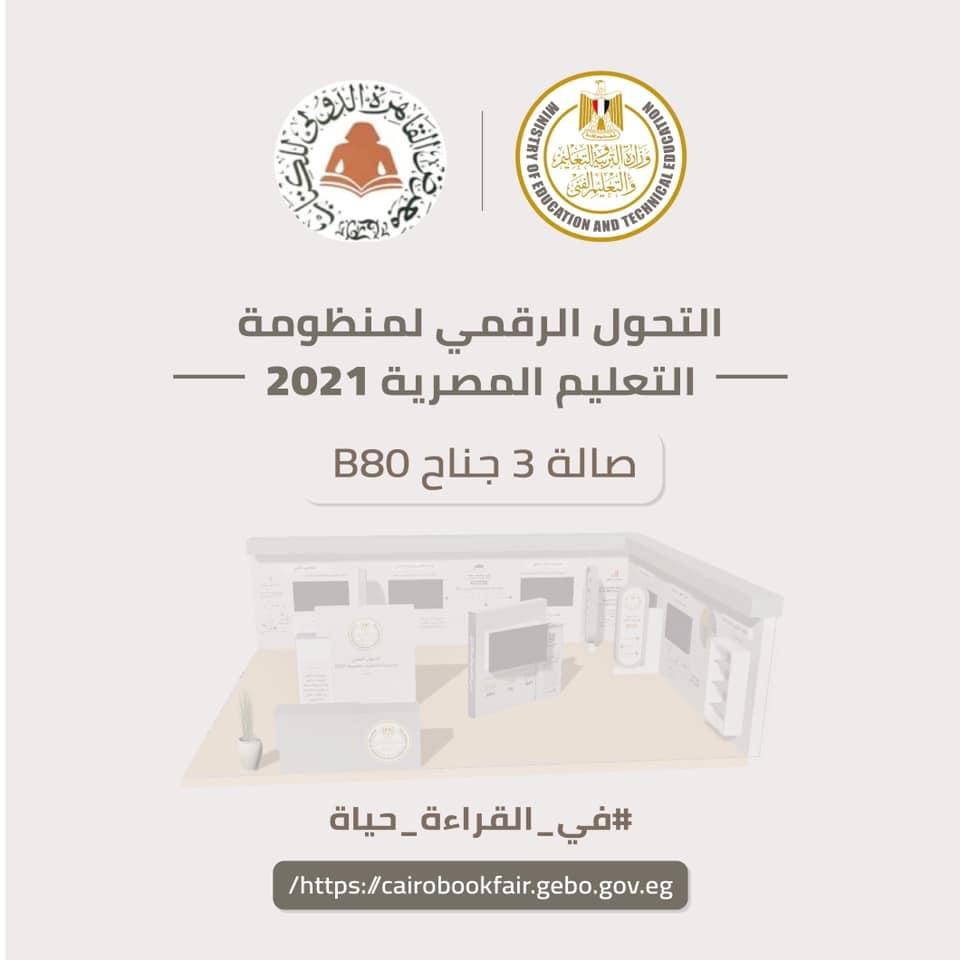 وخصصت الوزارة، صالة 3 جناح B80، لمعرفة كل ما قامت به الوزارة في السنوات الماضية في مُختلف الاتجاهات، كبناء نظام التعليم الجديد 2.0، وتطوير التعليم الفني والمنصات الإلكترونية المُختلفة وغيرها، تحت عنوان "التحول الرقمي لمنظومة التعليم المصرية 2021".