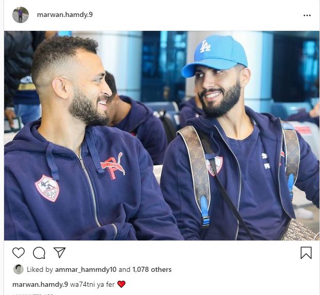 ونشر مروان حمدي عبر حسابه على انستجرام صورة تجمعه بفرجاني ساسي خلال سفرهما لإحدي المباريات بالخارج وعلق عليها بالقول: "وحشتني يا فرجاني".