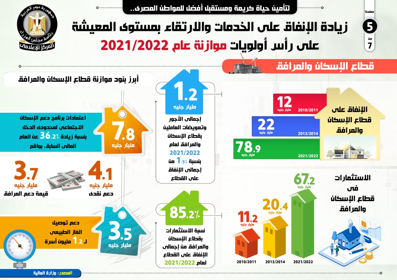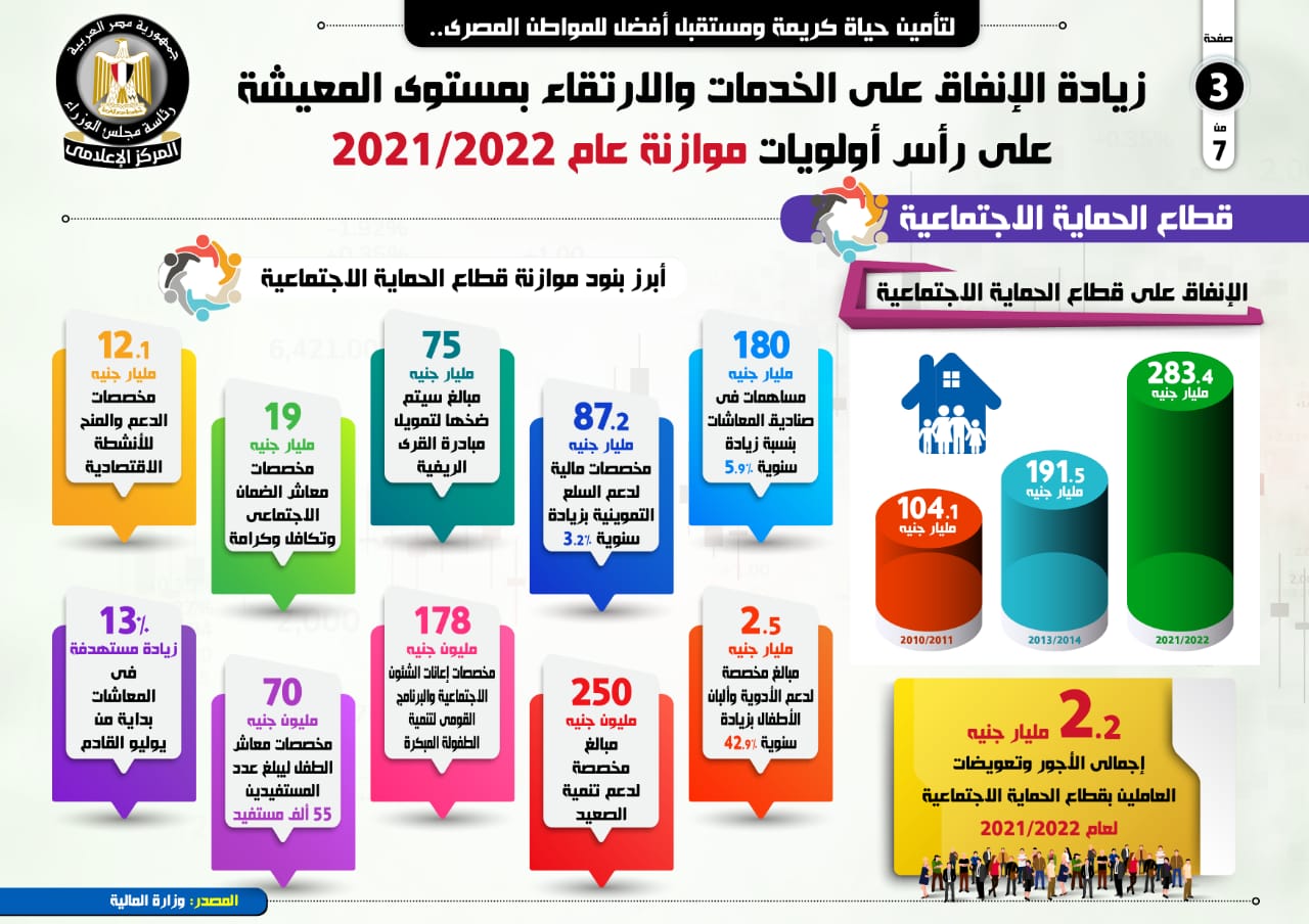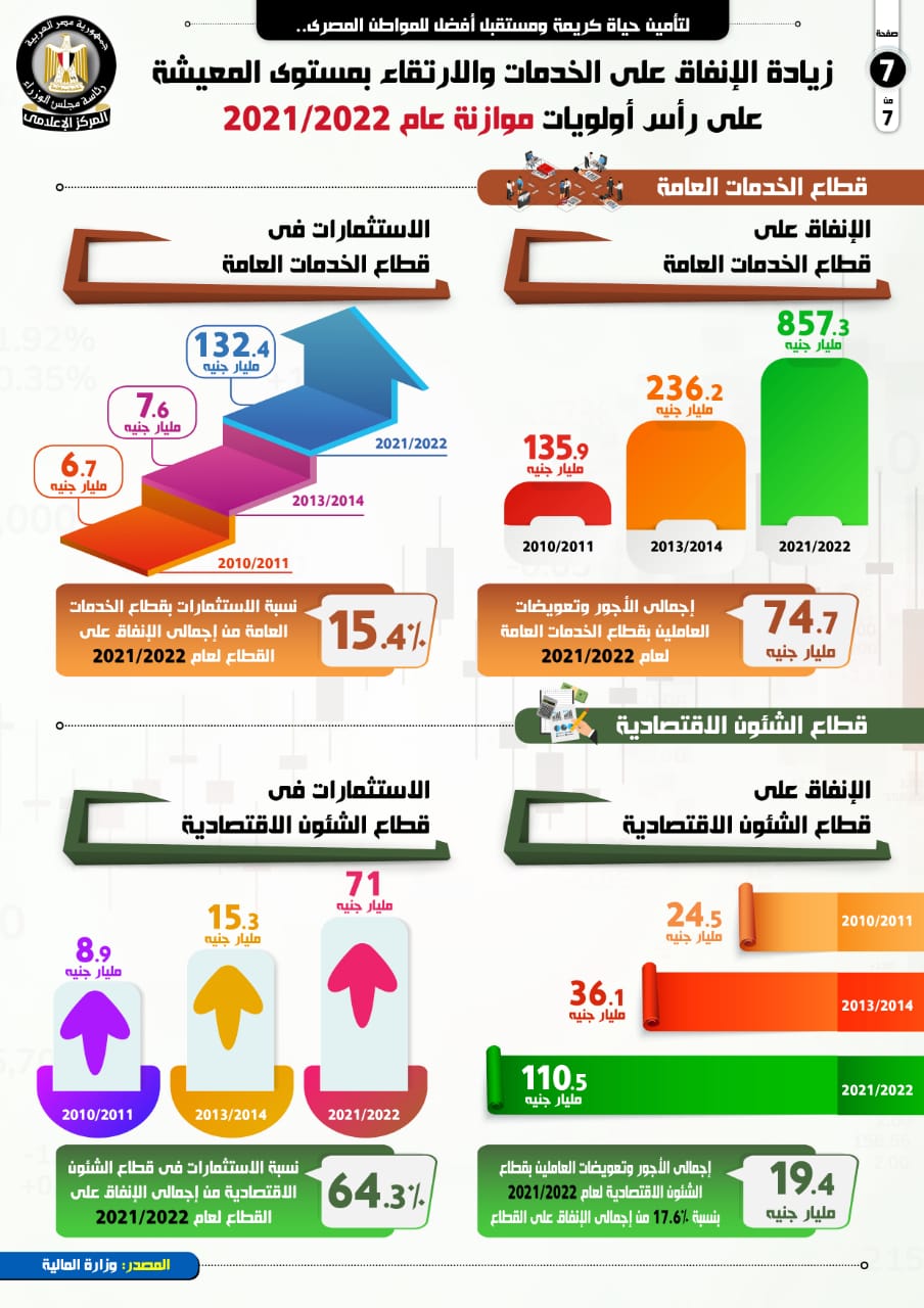 زيادة إنفاق الخدمات والارتقاء بالمعيشة على رأس أولويات موازنة 21/ 22 (إنفوجراف)