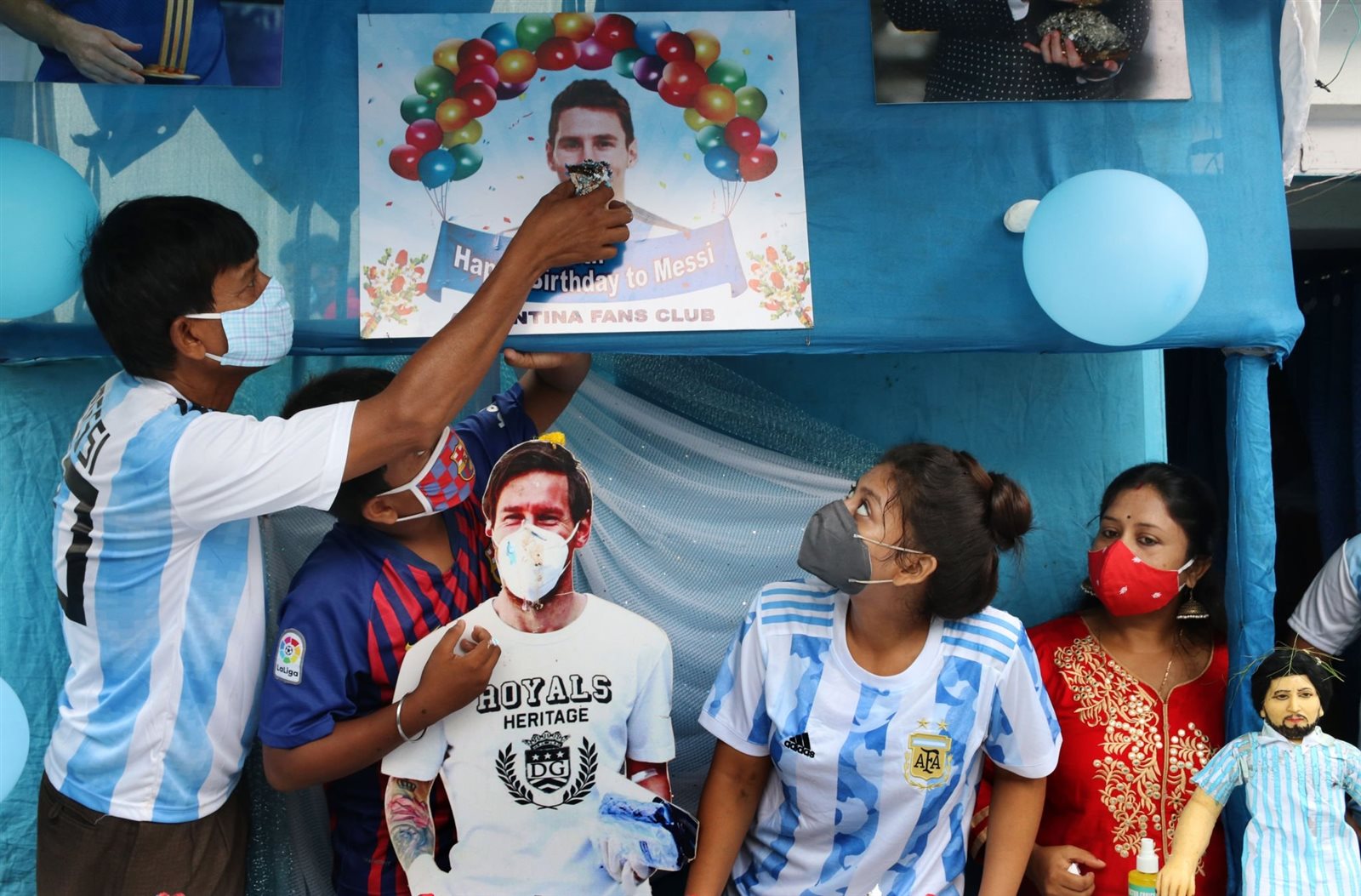 وأقيم أول أمس الاحتفال السنوي بيوم ميلاد ميسي بـ كالكوتا في الهند، ولكن بأعداد أقل مما كانوا عليه من قبل، بسبب تداعيات فيروس كورونا حيث قاموا بتوزيع الحلوى بجانب الرقص والتبرع بالدم والعديد من الأنشطة الخيرية.