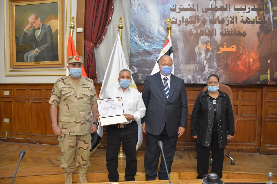 محافظ القاهرة يشهد أعمال تدريب مجابهة الأزمات ويكرّم عددًا من أسر الشهداء