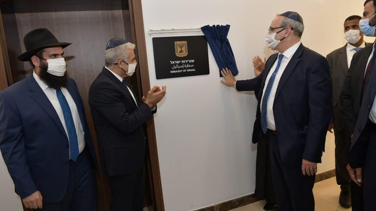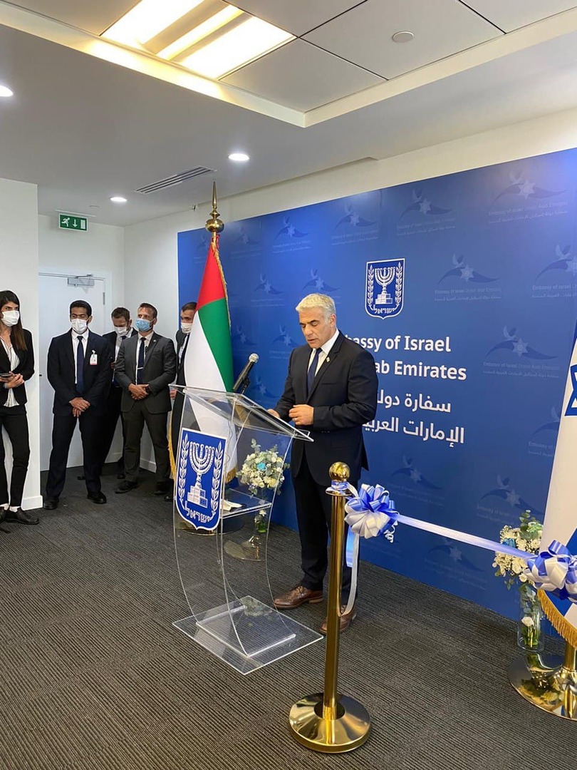 أفتتح يائير لبيد وزير الخارجية الإسرائيلي، ونورا الكعبي، وزيرة الثقافة والشباب الإماراتية، منذ قليل، السفارة الإسرائيلية في العاصمة الإماراتية أبو ظبي، من خلال وضع حجر "ميزوزا".