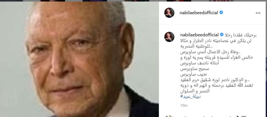 حرص عدد من الفنانين والإعلاميين، على نعي رجل الأعمال أنسي ساويرس، الذي وافته المنية صباح اليوم، وقدموا تعازيهم لأبنائه رجال الأعمال نجيب وسميح وناصف.