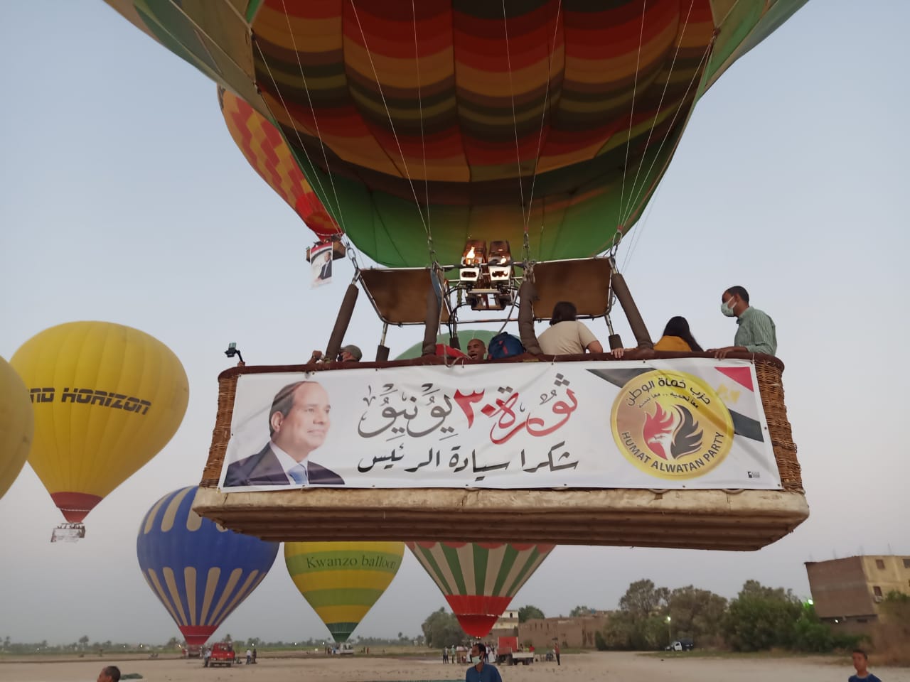 نظم حزب حماة الوطن، اليوم، احتفالية كبرى بمناسبة ذكرى ثورة 30 يونيو، بإطلاق 15 طائرة بالون حلقت في سماء محافظة الأقصر.