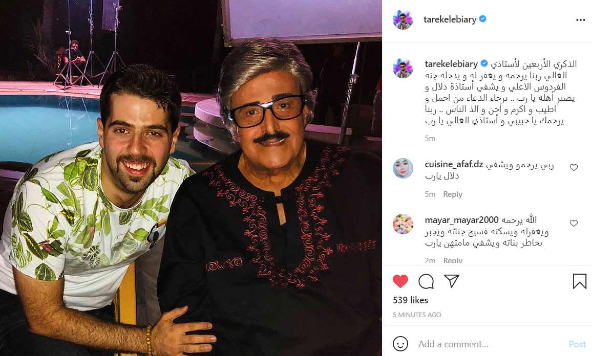 واستكمل الإبياري: "أدعو الله أن يشفي أستاذة دلال، ويصبر أهلها يا رب.. برجاء الدعاء من أجمل وأطيب وأكرم وأحن وألذ الناس.. ربنا يرحمك ياحبيبي، وأستاذي الغالي يا رب".