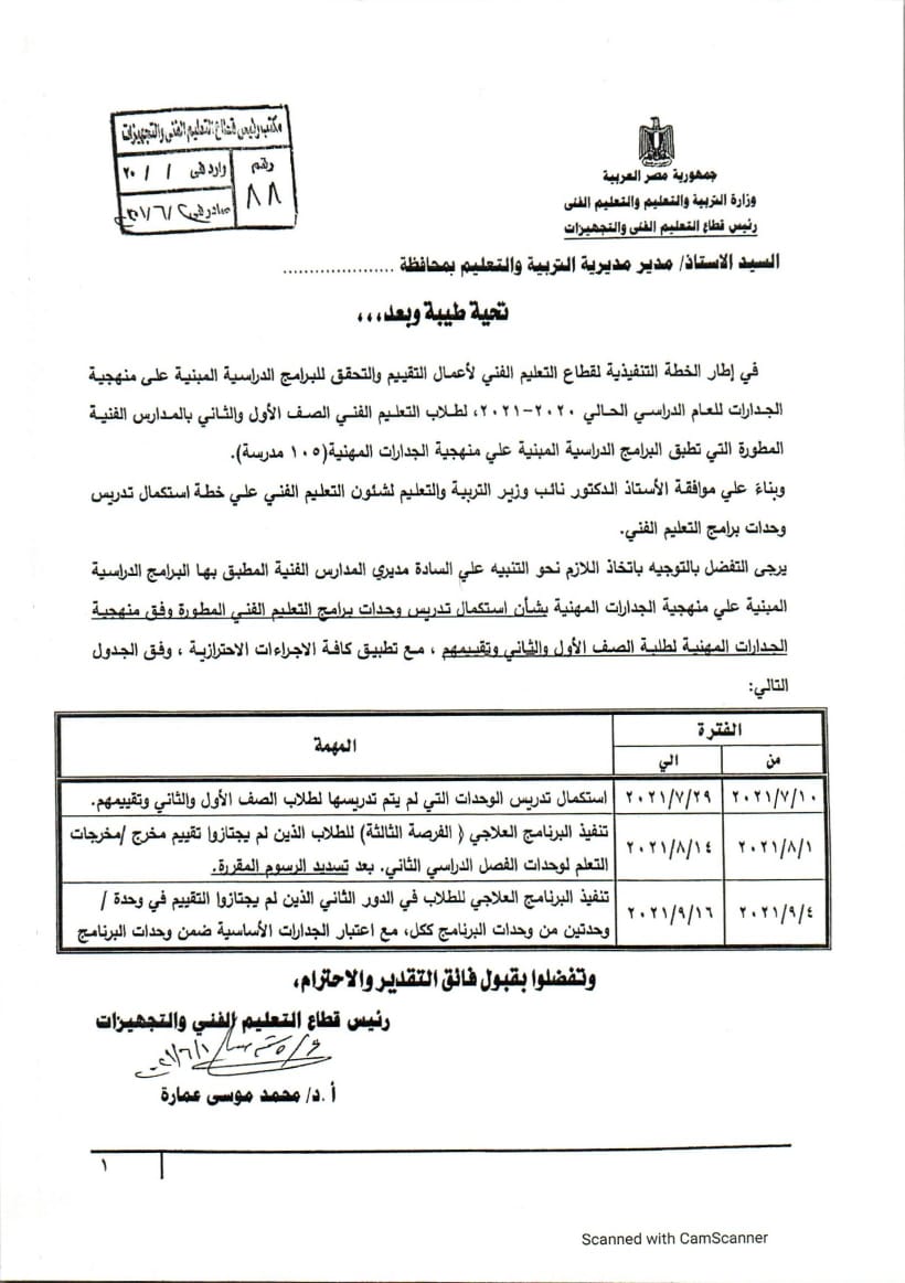 وجهت وزارة التربية والتعليم والتعليم الفنى، إخطارًا لجميع المديريات، في إطار الخطة التنفيذية لقطاع التعليم الفني، لأعمال التقييم والتحقق للبرامج الدراسية المبنية على منهجية الجدارات للعام الدراسى الحالى، لطلاب الصفين الأول والثاني الثاني في المدارس المطورة التي تطبق منهجية الجدارات والبالغ عددها، 105 مدارس، يتم التنبيه على مديري المدارس الفنية المطورة بضرورة استكمال وحدات برامج التعليم الفني المطورة، وفق منهجية الجدارات المهنية وتقييمها مع تطبيق الإجراءات الاحترازية.
