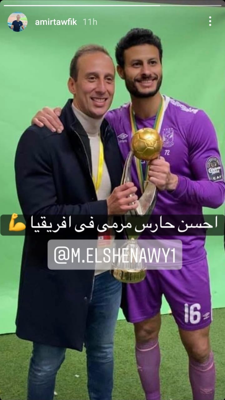 فيما نشر أمير توفيق، مدير التعاقدات بالنادي الأهلي، صورة تجمع مع محمد الشناوي عبر حسابه الشخصي على موقع التواصل الاجتماعي "إنستجرام"، معلقًا: "أحسن حارس مرمى في إفريقيا".