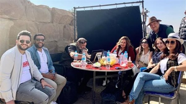 وظهر في الصور برفقة سوزان نجم الدين عدد من الفنانين الذين يجسدوا أبطال العمل وهم خالد الصاوي، محمد جمعة، ويزو، مصطفى خاطر، والمخرج سامح عبد العزيز.