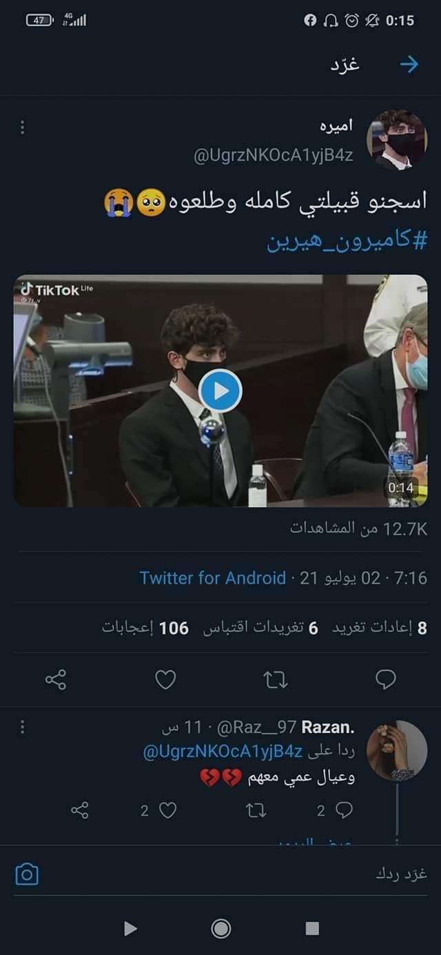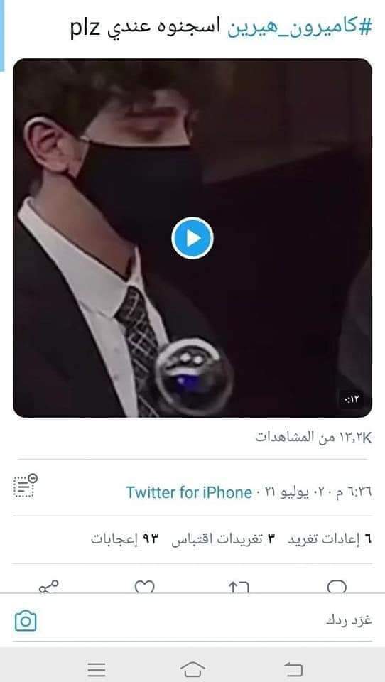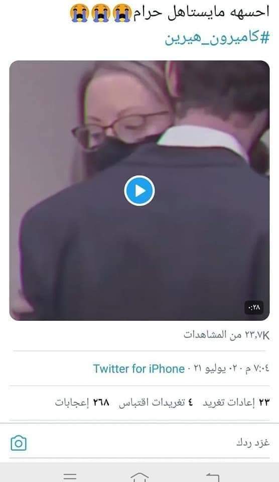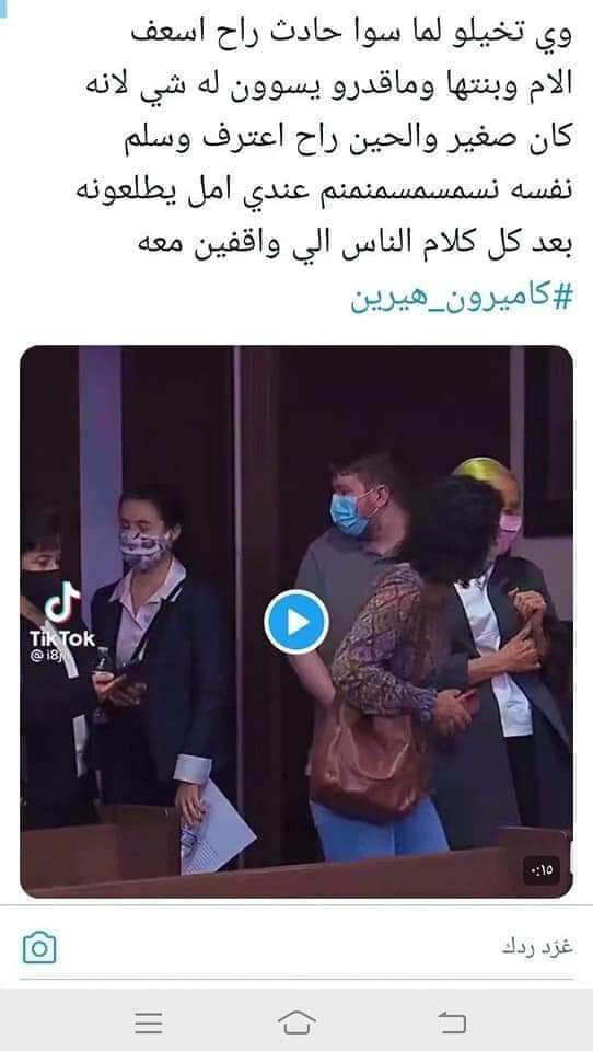 وكتب مستخدم آخر على تويتر: "حرام طلعوه ما كان متعمد"، بالإضافة إلى: "كامرون هيرين اسجنوه عندي بليز".