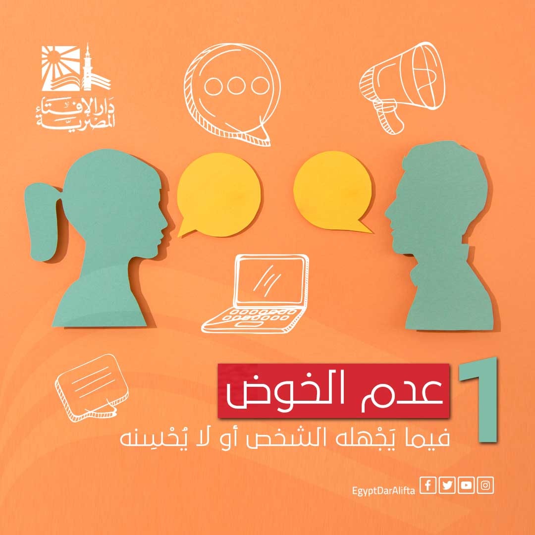 أولًا: عدم الخوض فيما يَجْهله الشخص أو لا يُحْسِنه؛ قال الله تعالى: {وَلَا تَقْفُ مَا لَيْسَ لَكَ بِهِ عِلْمٌ إِنَّ السَّمْعَ وَالْبَصَرَ وَالْفُؤَادَ كُلُّ أُولَئِكَ كَانَ عَنْهُ مَسْئُولًا} [الإسراء: 36].