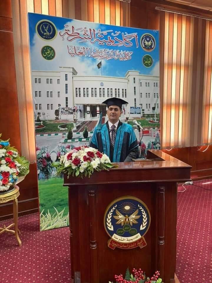 وتمت مناقشة الرسالة بقاعة الاحتفالات الكبرى بكلية الدراسات العليا بأكاديمية الشرطة بحضور كوكبة من قادة وضباط كلية الشرطة، وتهنئة خاصة من عميد دكتور كامل خلف الله، بقطاع التدريب بأكاديمية الشرطة، والكاتب الصحفي سلامة حربي، مدير تحرير الأهرام المسائي.