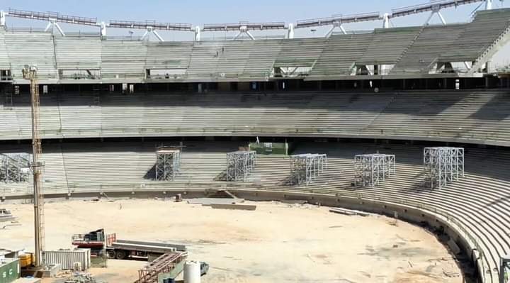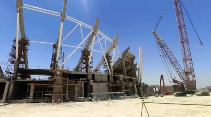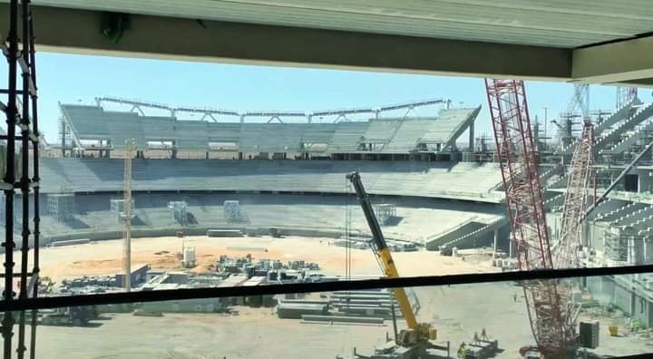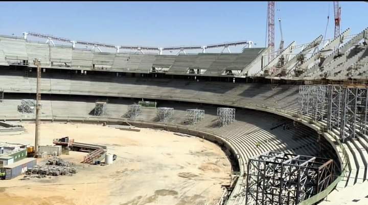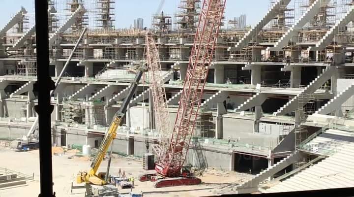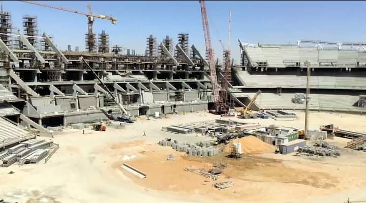 تتواصل أعمل البناء في استاد العاصمة الإدارية الجديدة ، الذي يعد الأكبر في مصر بسعة 90 الف متفرج، والثاني في القارة السمراء.