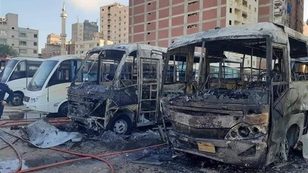 حريق يلتهم 4 أتوبيسات نقل بجراج شرق الإسكندرية دون وقوع إصابات