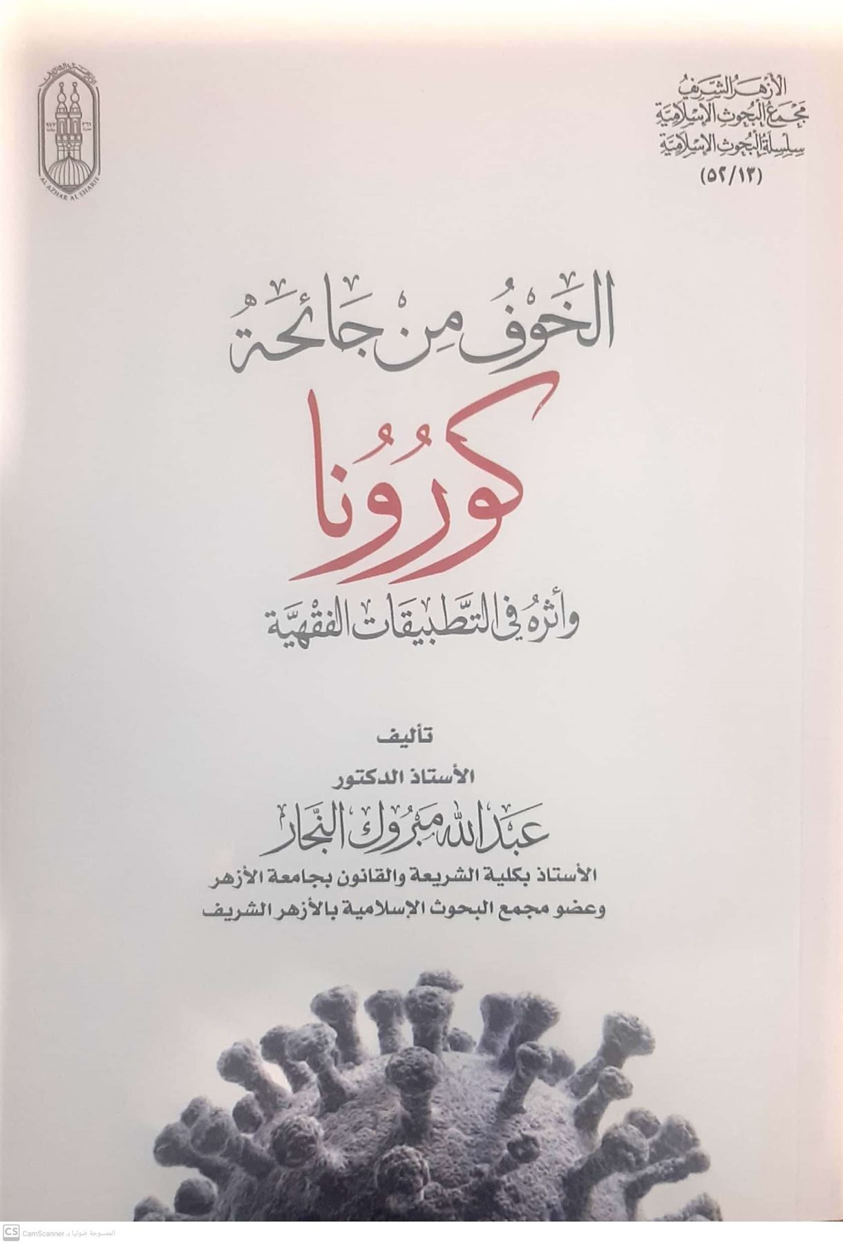 يقدم جناح الأزهر الشريف بمعرِض القاهرة الدوليّ للكتاب لزواره كتاب "الخوف من جائحة كورونا وأثره في التطبيقات الفقهية"، بقلم الدكتور عبد الله النجار، عضو مجمع البحوث الإسلامية بالأزهر، حيث يناقش الكاتب التأصيل الشرعي للخوف من الجائحة وأثره في الأهلية والتكليف وتطبيقاتها الأصلية والمعاصرة.