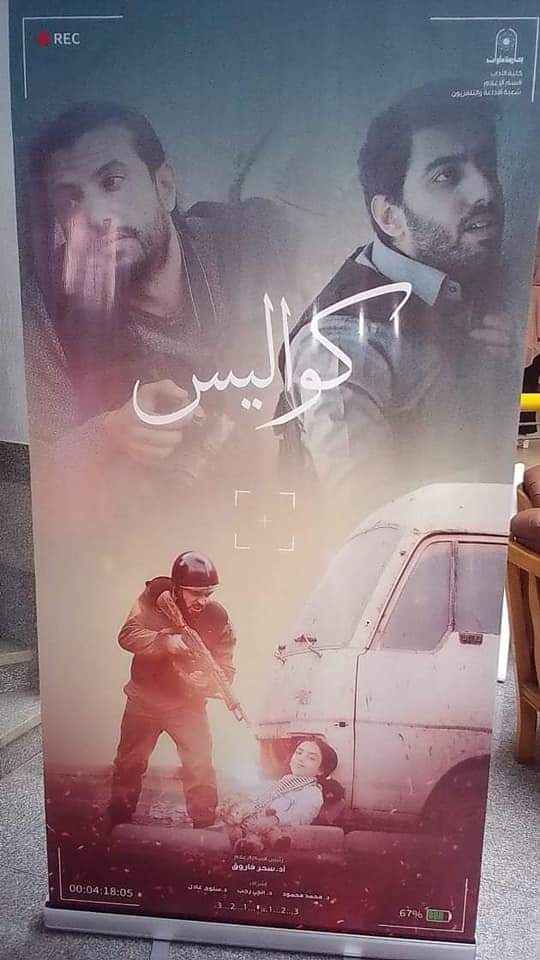 كما عرض الطلاب فيلم "كواليس" وهو درامي قصير يدور حول مهنة المصور الصحفي خاصة مصوري الحروب والمناطق الساخنة ومدى تأثرهم بالمواقف الصعبة التي يتعرضون لها أثناء تأدية مهمتهم، مع التركيز على تصوير حدث في دولة فلسطين، وفي نهاية الفيلم تم عرض لقاءات مسجلة مع مجموعة من المصورين الصحفيين الذين سجلوا أحداثًا ساخنة، وتم عرض أغنية تم تسجيلها خصيصا للتضامن مع الدول العربية.