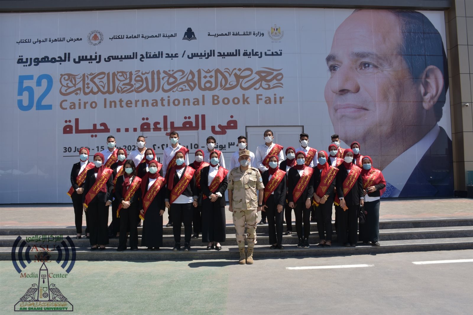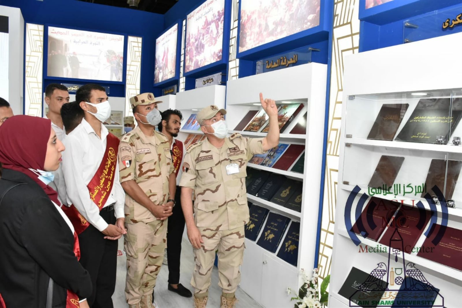 نظمت قوات الدفاع الشعبي والعسكري، بالتعاون مع جامعة عين شمس، اليوم الخميس، زيارة إلى معرض القاهرة الدولي للكتاب 2021 في دورته الـ 52 تحت شعار "في القراءة حياة"، ضمن إطار اهتمام القيادة العامة للقوات المُسلحة للارتقاء بمستوى الوعي، ورفع روح الولاء والانتماء لدي طلاب الجامعات، وحرصًا من جامعة عين شمس على رفع المستوى الثقافي والعلمي، وتوعية طلابها في شتى مجالات المعرفة.