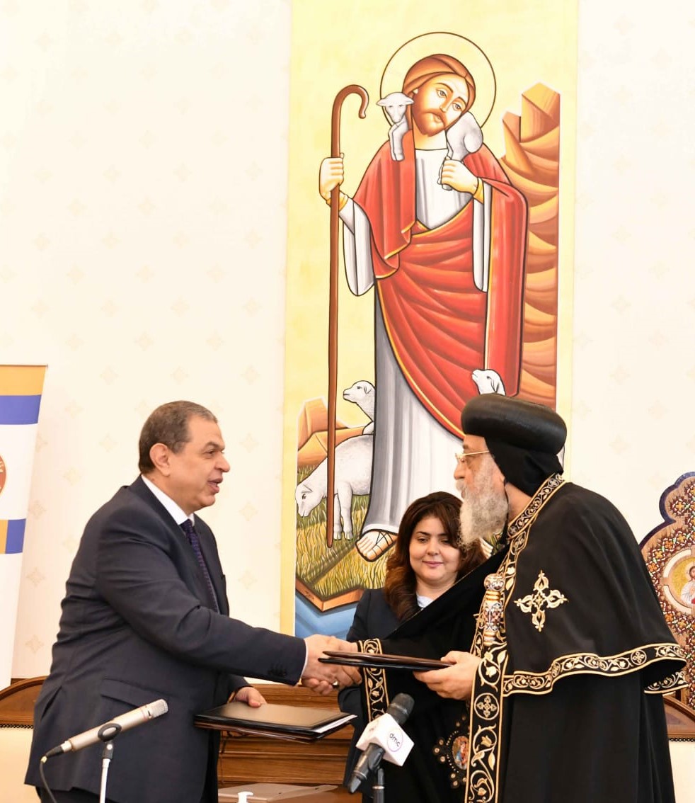 وقعت أسقفية الخدمات العامة والاجتماعية بالكنيسة القبطية الأرثوذكسية، اليوم الخميس، اتفاقيتي تعاون مع وزارة القوى العاملة، بحضور قداسة البابا تواضروس الثاني ومحمد سعفان وزير القوى العاملة، وذلك بالمقر البابوي في القاهرة.