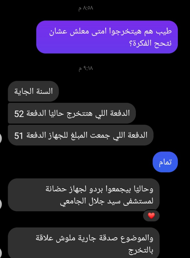واشترت الطالبات جهازًا للغسيل الكلوي والتبرع به لمستشفى "سيد جلال الجامعي" كصدقة جارية عنهن.