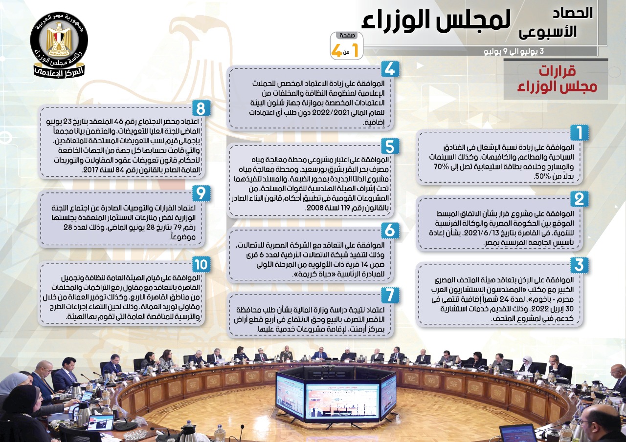 الحصاد الأسبوعي لمجلس الوزراء (إنفوجراف)