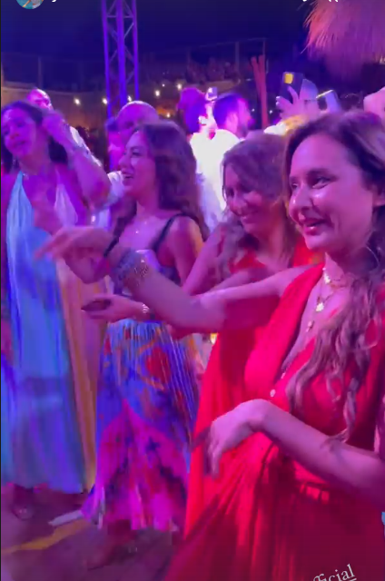 وانتشرت مجموعة من الفيديوهات تجمع العروسين من حفل الزفاف وظهرا فيها وهما يرقصان على مهرجان “إخواتي"، كما شاركتهم الفنانة نيللي كريم بالرقص.