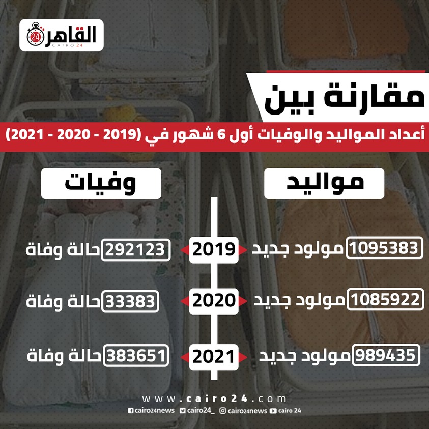 كما أوضح المركز ارتفاع عدد الوفيات بصفة عامة خلال عام 2020 بنسبة 16.8% مقارنة بعدد الوفيات خلال عام 2019، كما كشف ارتفاع أعداد الوفيات في الـ6 شهور الأولى من عام 2021 مقارنة مع الفترة نفسها من عام 2020 بنحو (49818) متوفيًا أي بنسبة تغير (14.9%) ويعد تغيرًا كبيرًا في نسبة الارتفاع.