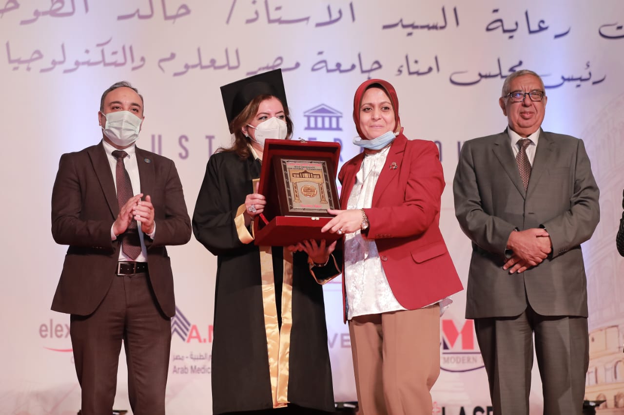 وتضمن الحفل أيضًا قيام جامعة مصر للعلوم والتكنولوجيا، بتكريم الملحق الثقافي الإيطالي والدكتور مجدي بيومي وكيل نقابة الأسنان، والدكتور خالد أبو الفضل رئيس قطاع طب الفم والأسنان بالمجلس الأعلى للجامعات، والدكتورة أماني خليفة رئيس الإدارة المركزية لطب الأسنان بوزارة الصحة.