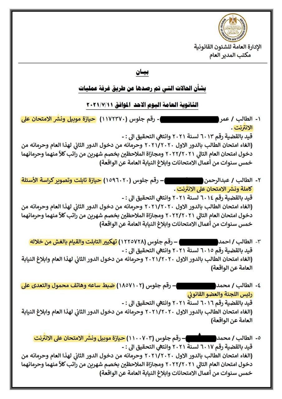 نشر الدكتور طارق شوقي، وزير التربية والتعليم، بيان حالات المخالفات التي تم رصدها في ثاني أيام امتحانات الثانوية العامة.