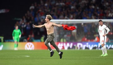 توقفت مباراة إيطاليا امام إنجلترا في نهائي بطولة كأس الأمم الأوروبية بالدقائق الأخيرة من عمر الشوط الثاني، بسبب اقتحام مشجع إنجلترا ملعب المباراة.