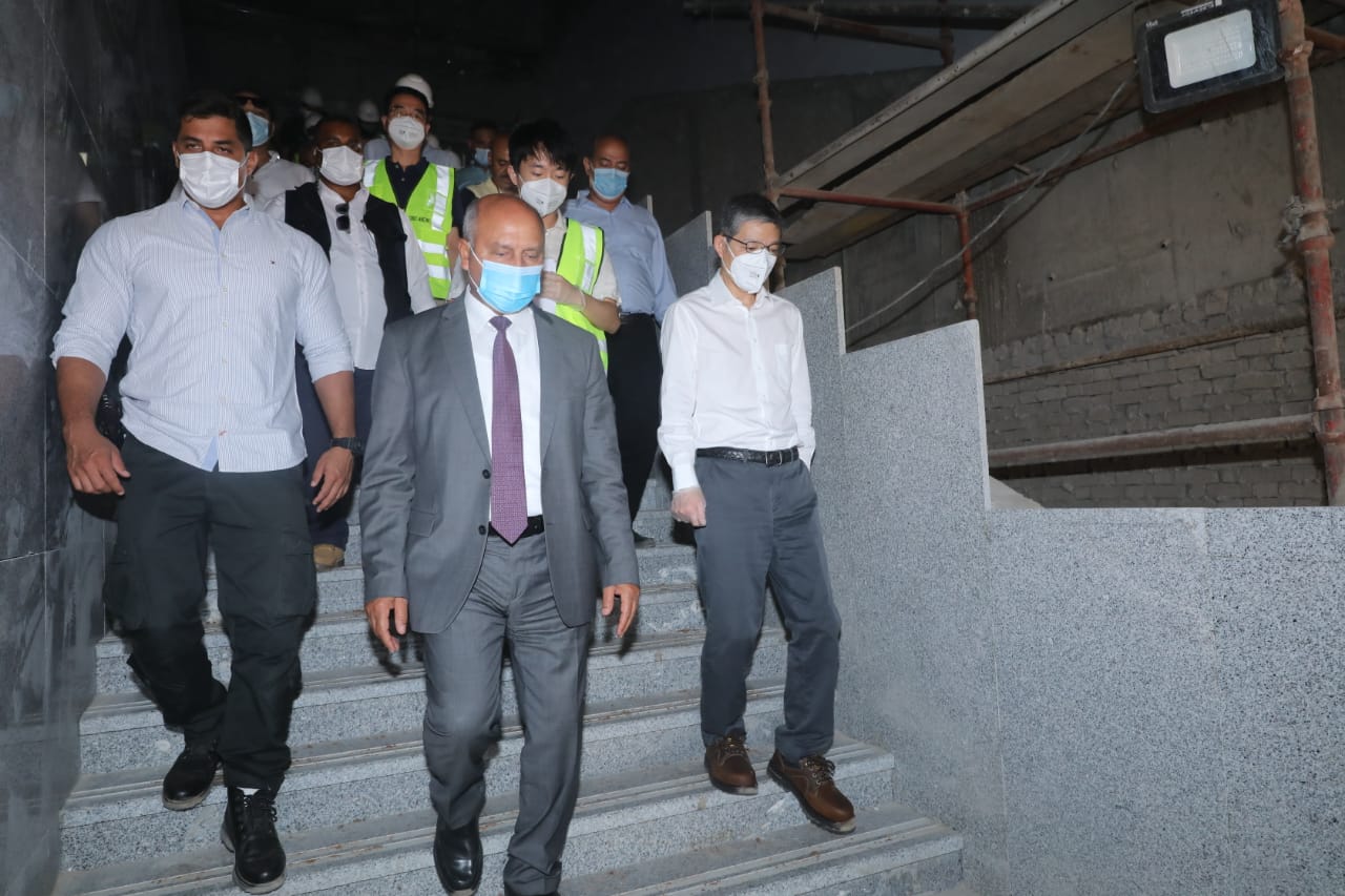 وعقب الاجتماع، تفقد وزير النقل والسفير الصيني بالقاهرة، أعمال تنفيذ محطة العبور، وتم الاطمئنان على مُعدلات التنفيذ، إضافة إلى تفقد باقي محطات المشروع، والتي بلغت نسبة تنفيذها 89%، وكذلك ورشة القطار الكهربائي الخفيف LRT والتي تضم 26 مبنى، وبلغت نسبة تنفيذها 70%، وكباري المشروع حيث يشتمل المشروع على عدد 4 كباري سيارات، تم الانتهاء منها جميعًا وتشغيلها تجريبيًا أمام حركة السيارات وهي كباري "الهايكستب - المستقبل1 - المستقبل 2 - والشروق"، بالإضافة إلى عدد 7 كباري لمسار القطار الكهربائي وصلت نسبة التنفيذ لعدد 6 كباري منها نحو 99.5% وهي “الإسماعيلية - جنيفا - الروبيكي1و2 - السويس - والعاصمة 1”، وجاري الانتهاء من كوبري العاصمة 2.