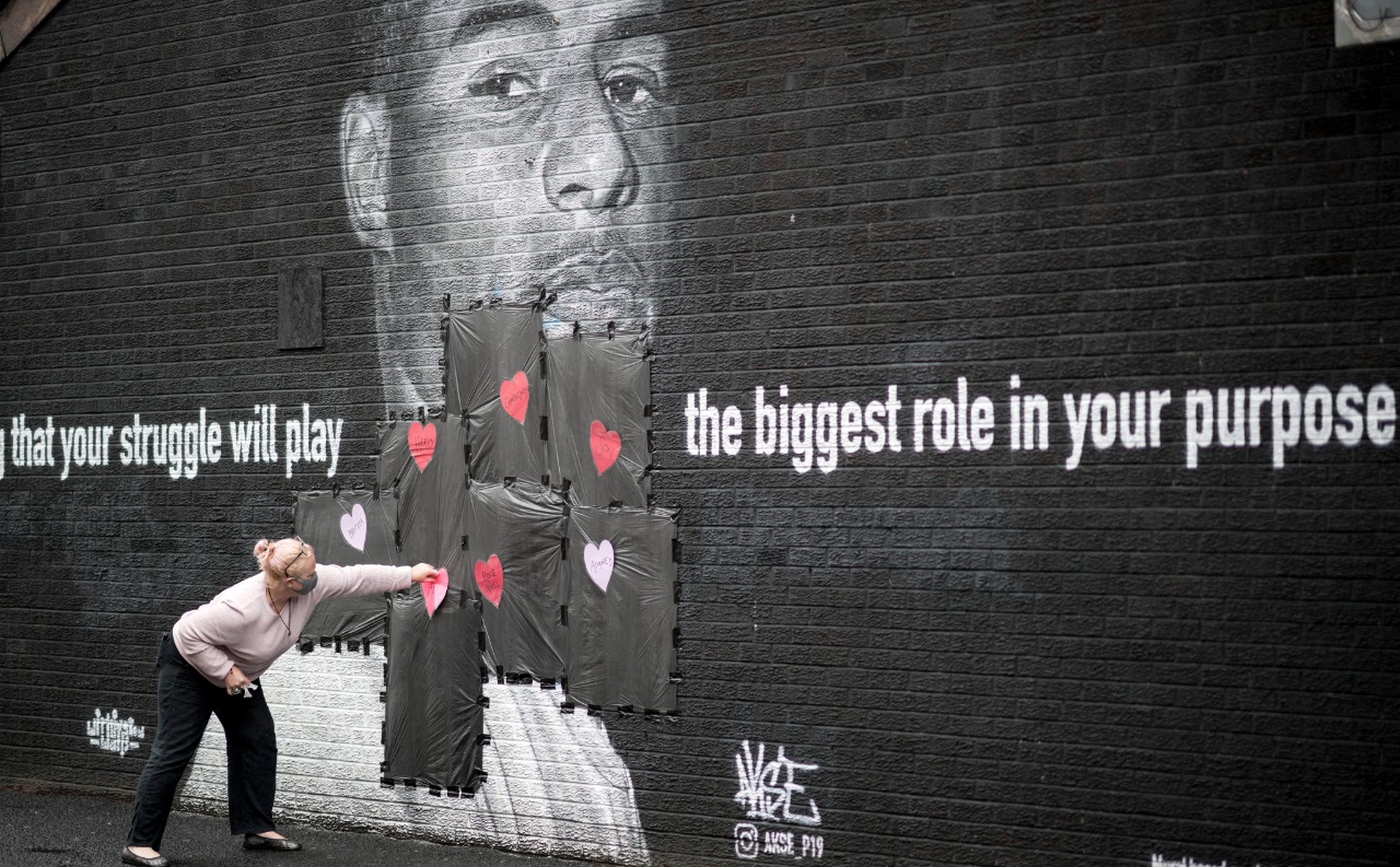 وتمت تغطية جزء من اللوحة الجدارية لماركوس راشفورد التي تعرضت للتشويه بعد هزيمة منتخب إنجلترا الليلة الماضية أمام إيطاليا في ركلات الترجيح.